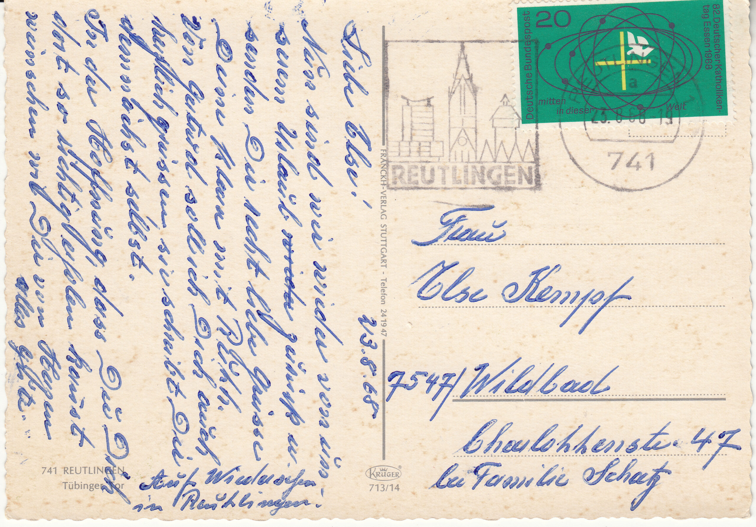 0.713- 14 Krüger Postcard Germany Reutlingen