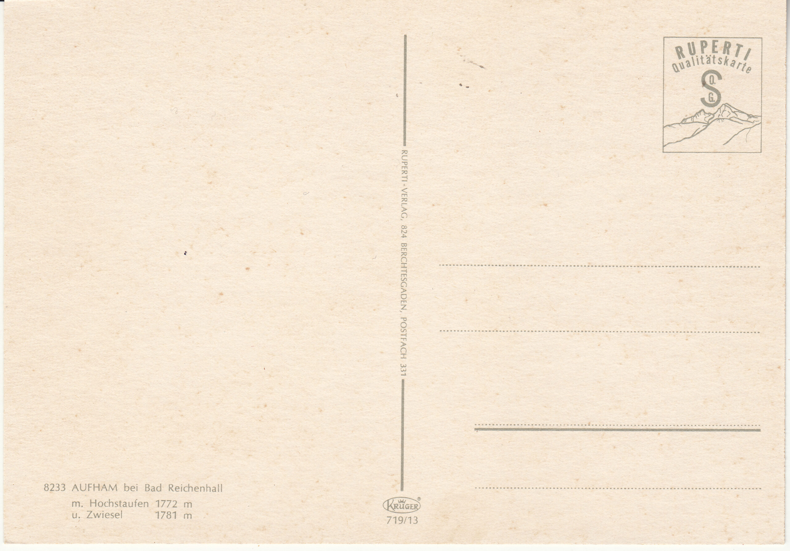 0.719- 5.31 Krüger Postcard Germany Bad Reichenhall