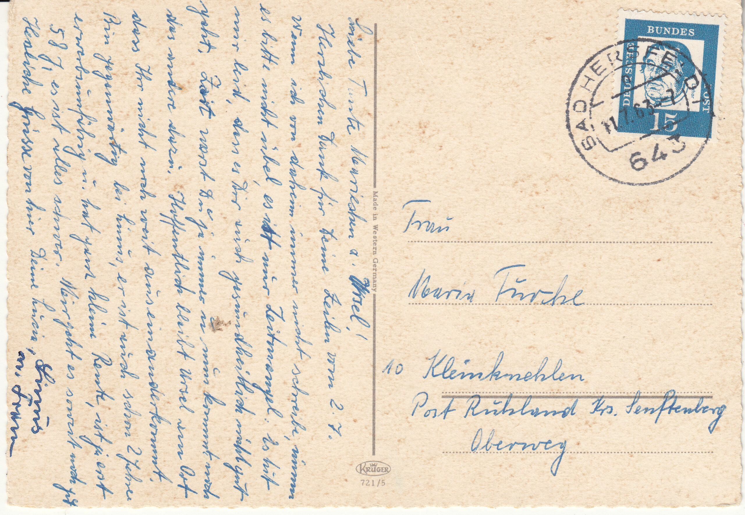 0.721- 5 Krüger Postcard Germany Bad Hersfeld