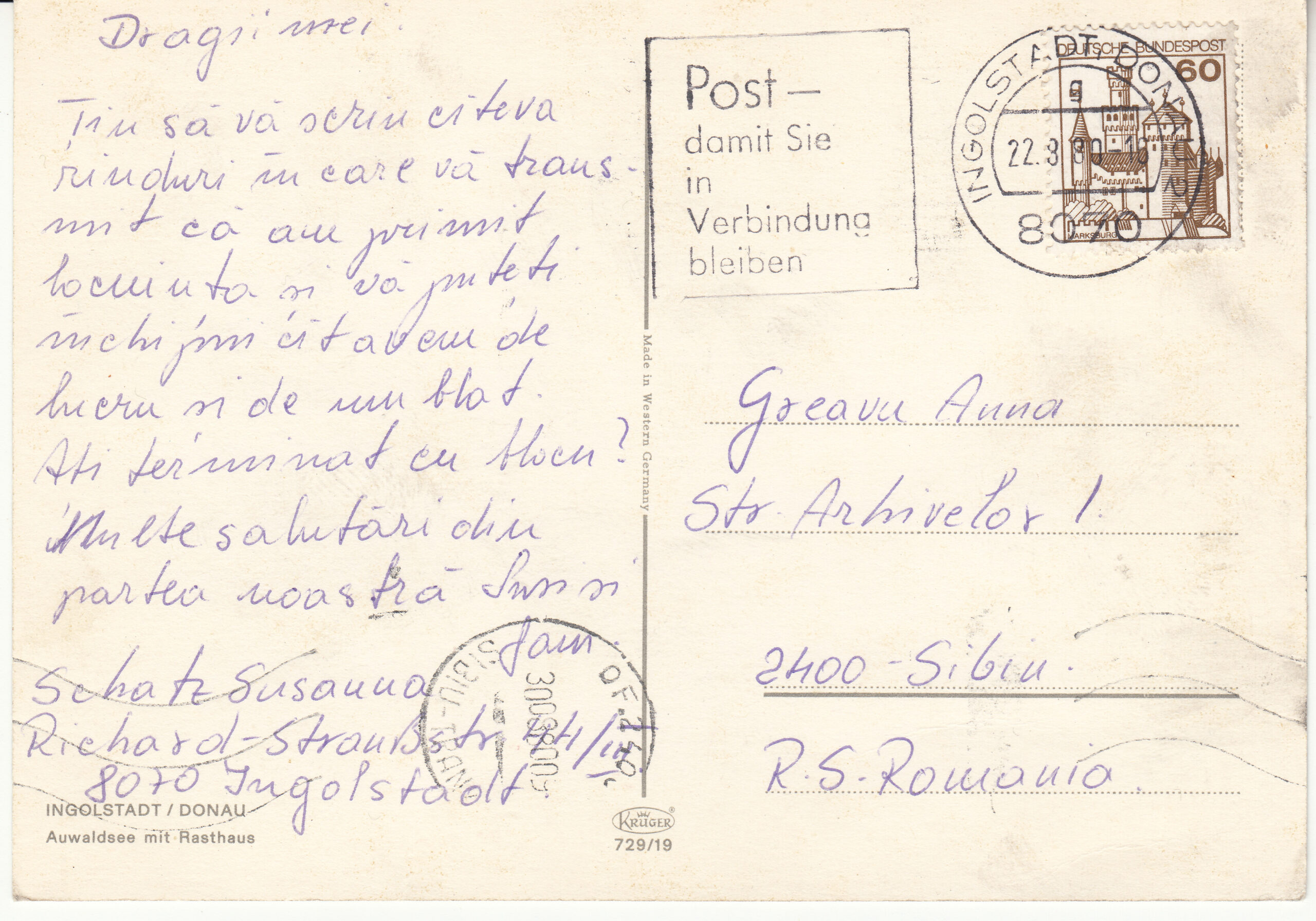 0.729- 1 Krüger Postcard Germany Ingolstadt