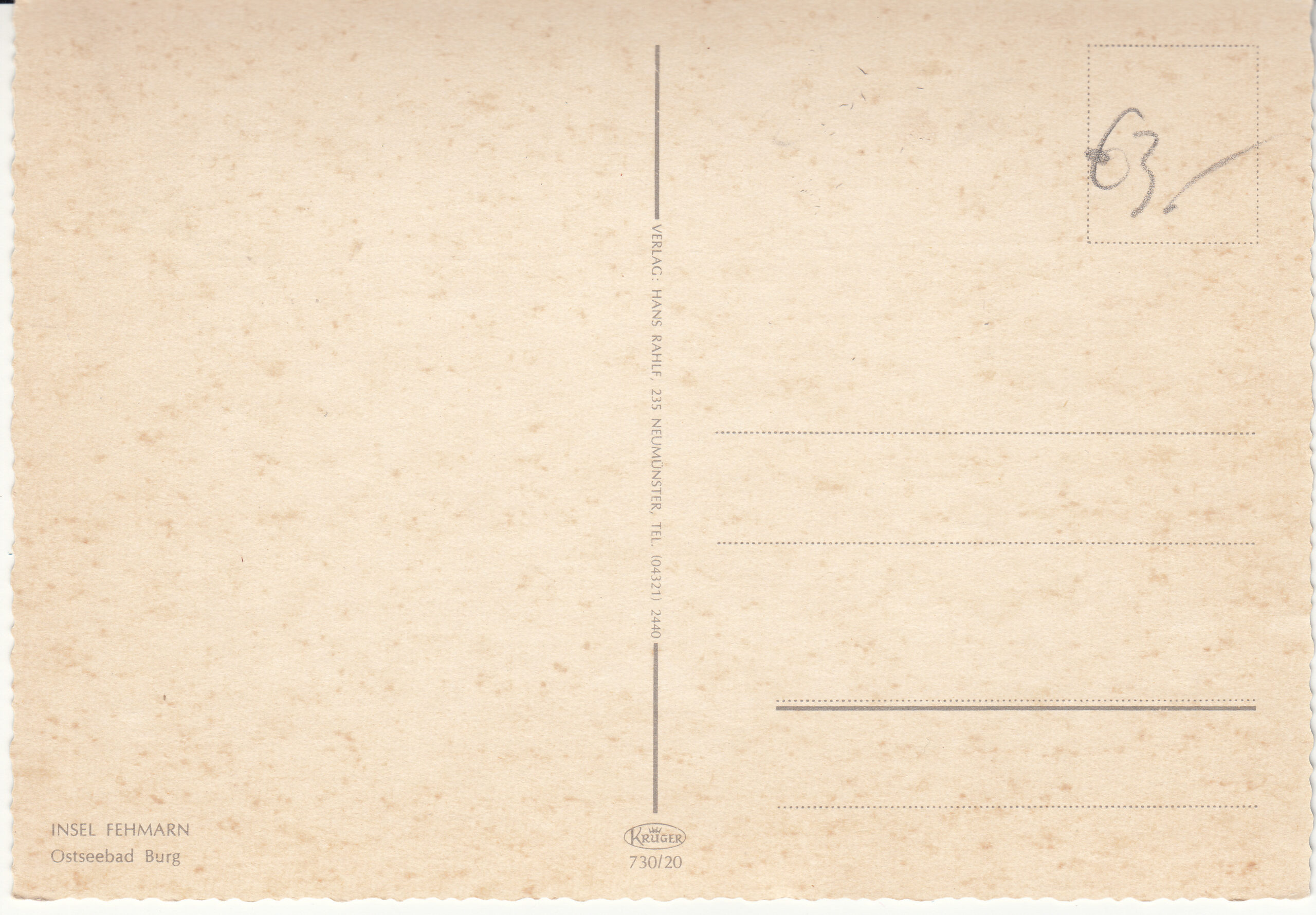 0.730- 20 Krüger Postcard Germany Fehmarn