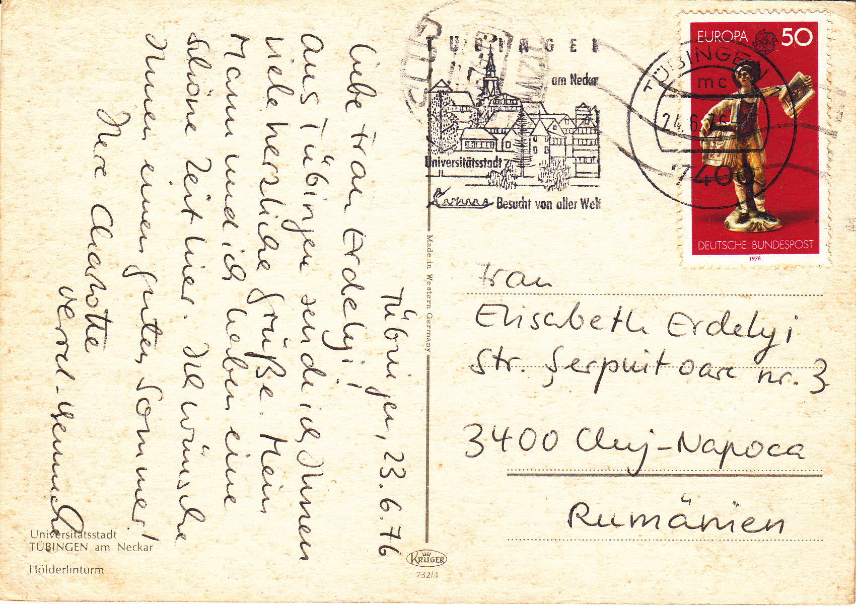 0.732- 4 Krüger Postcard Germany Tübingen