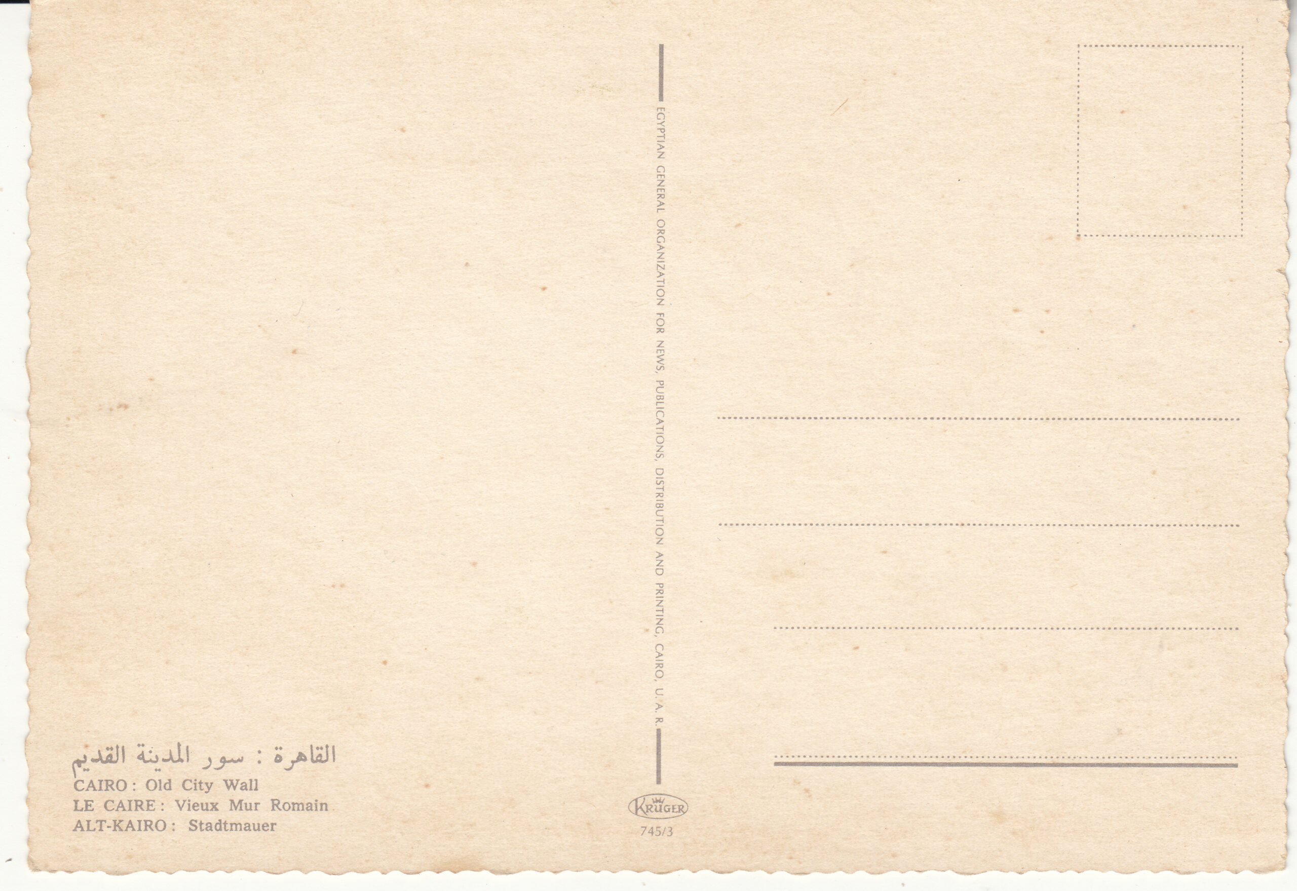 0.745- 3 Krüger Postcard Egypt Cairo