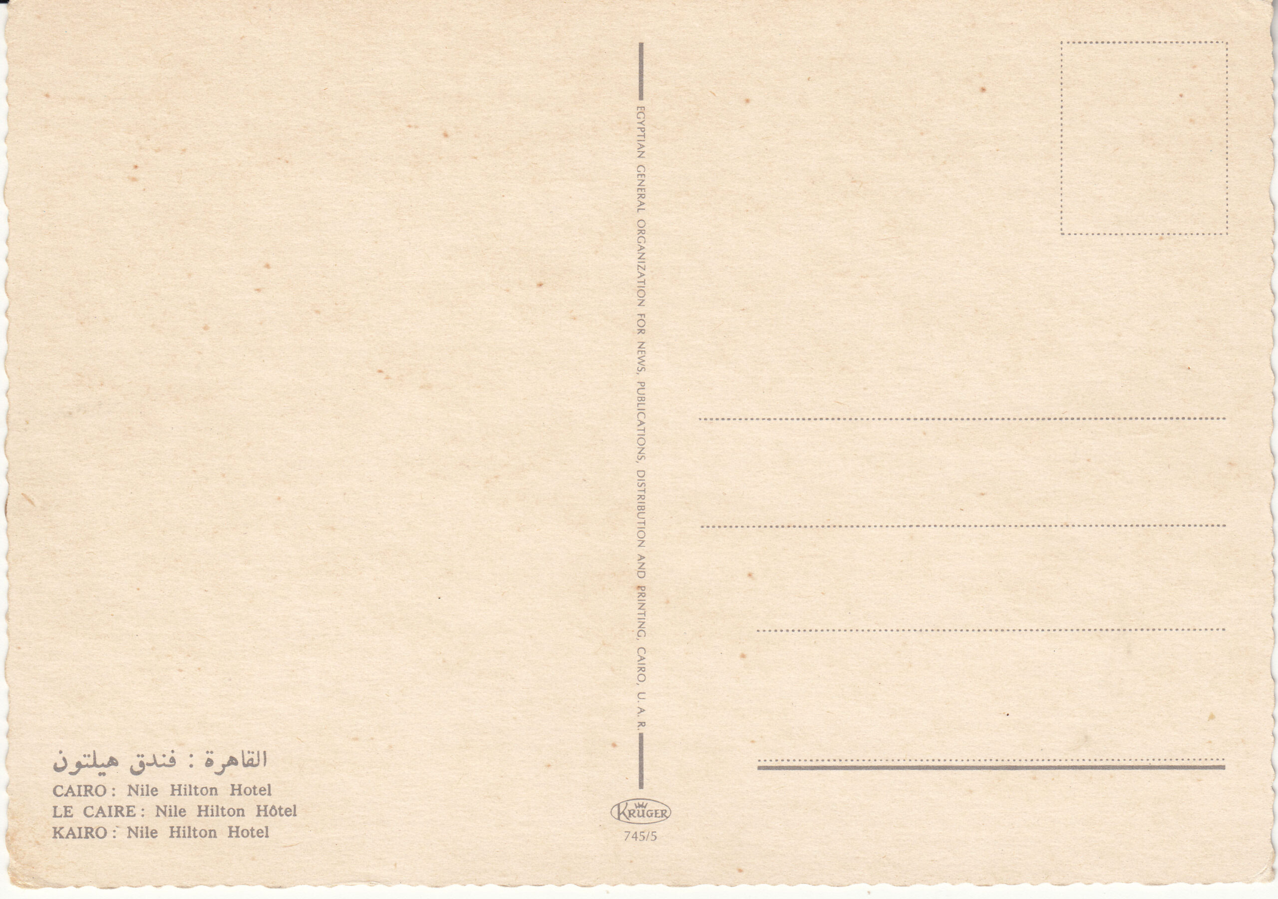 0.745- 5 Krüger Postcard Egypt Cairo
