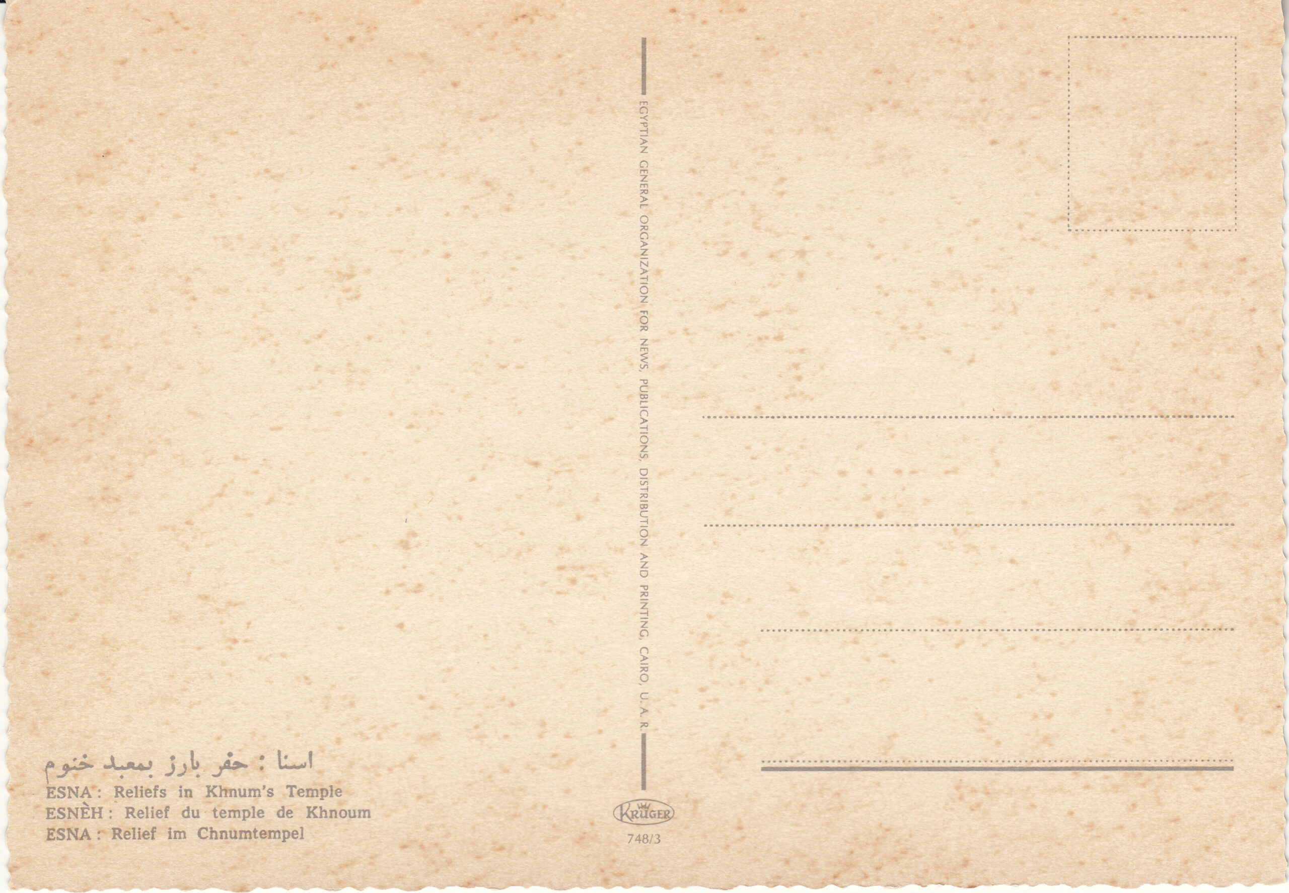 0.748- 5 Krüger Postcard Egypt Edfu