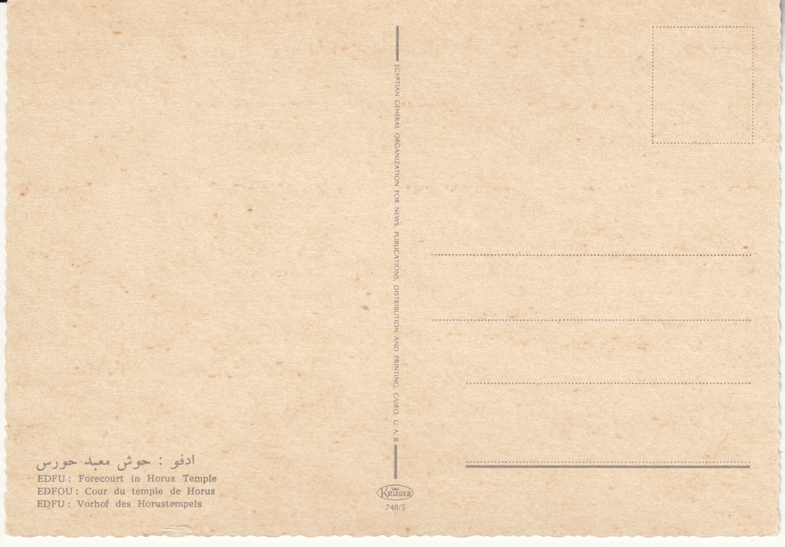 0.748- 6.66 Krüger Postcard Egypt Edfu