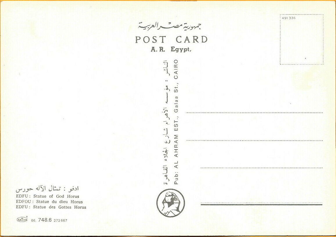 0.748- 5 Krüger Postcard Egypt Edfu