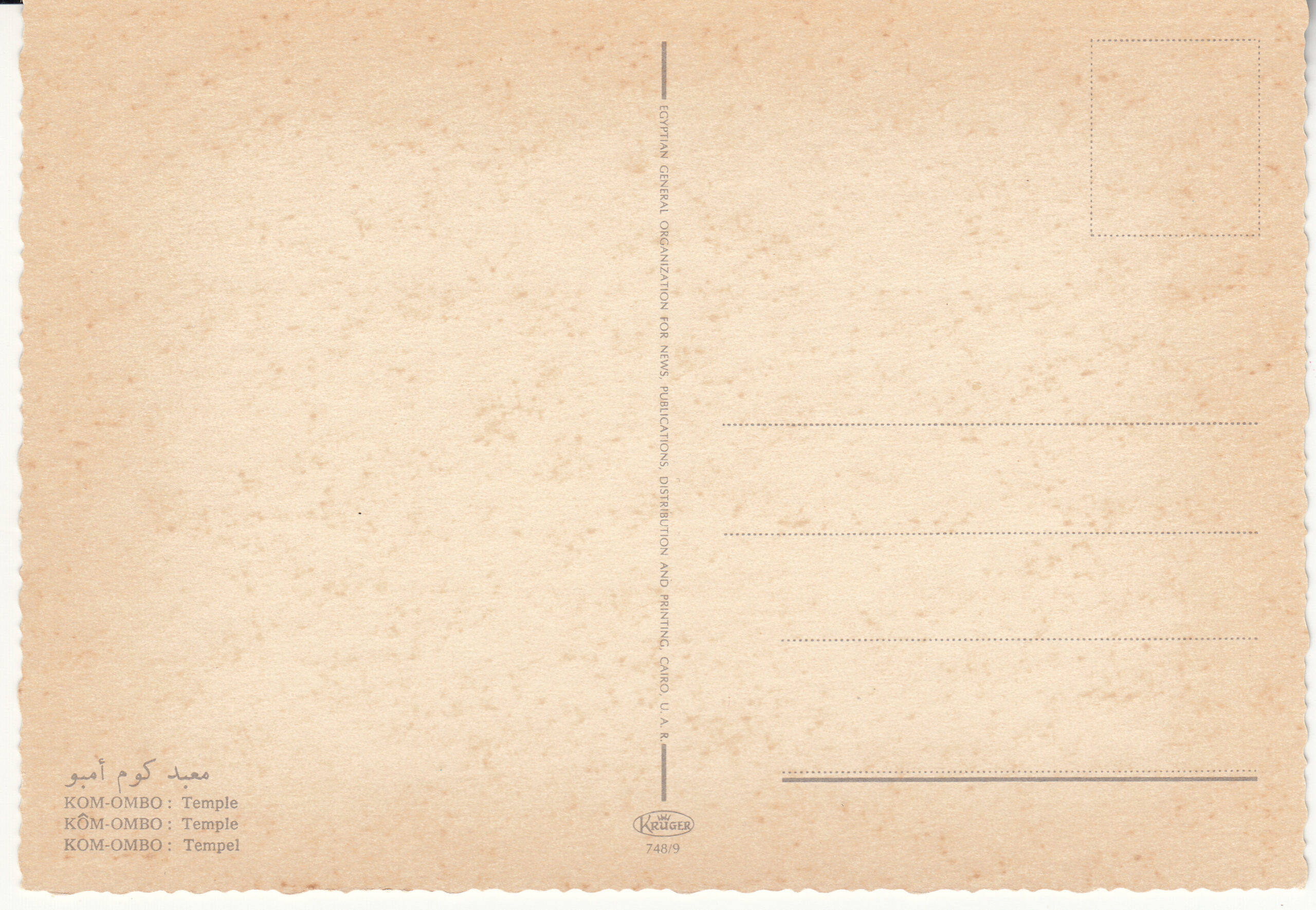 0.748- 9 Krüger Postcard Egypt Kom-Ombo