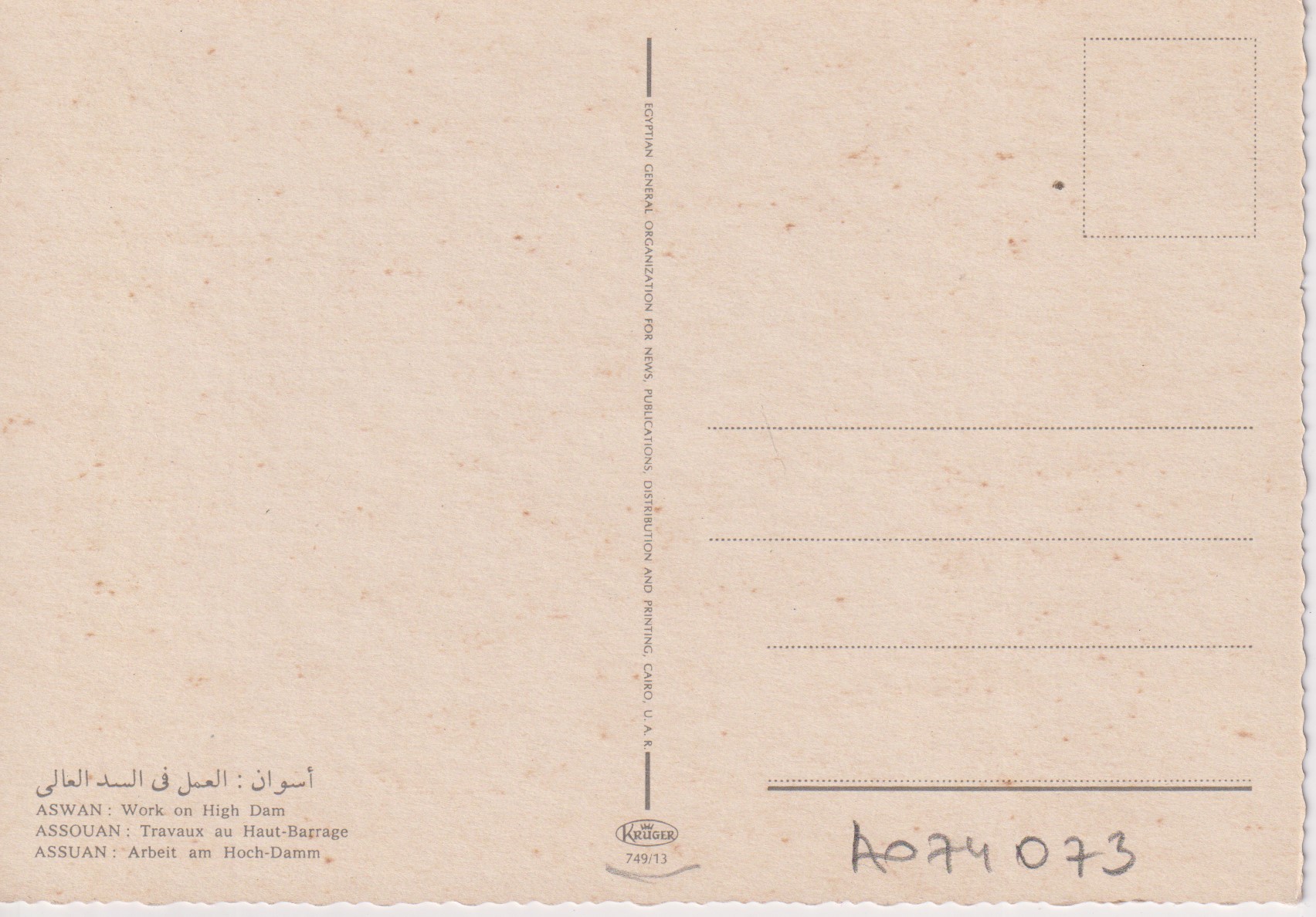 0.749- 1 Krüger Postcard Egypt Aswan