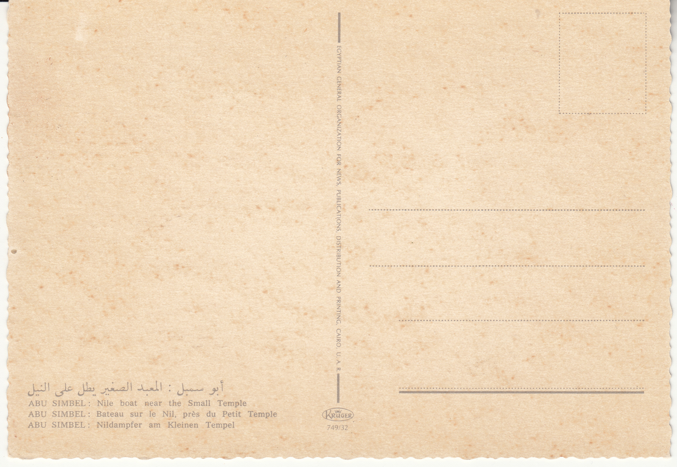 0.749- 32 Krüger Postcard Egypt Abu Simbel