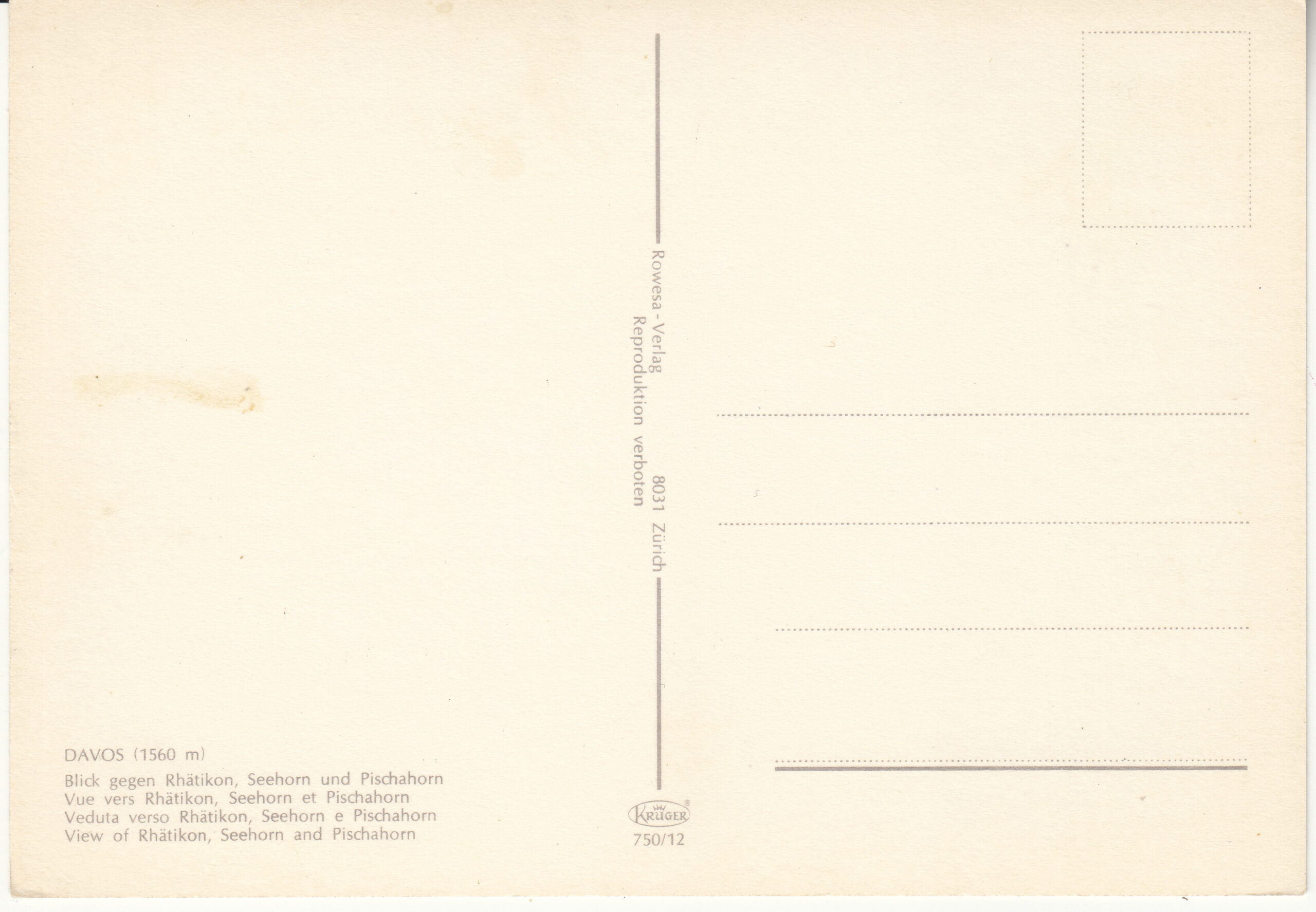 0.750- 12 Krüger Postcard Switzerland Davos