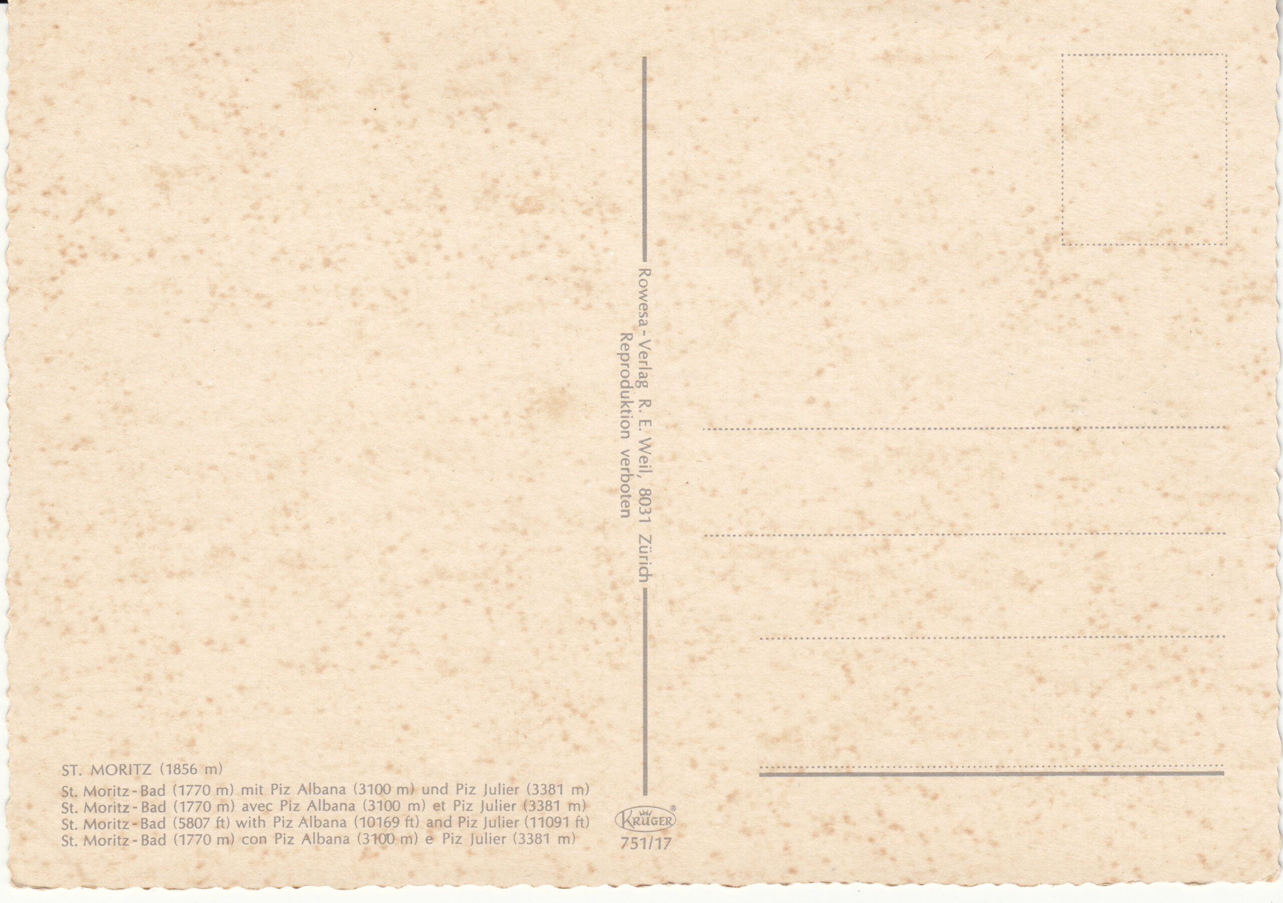 0.751- 17 Krüger Postcard Switzerland St. Moritz