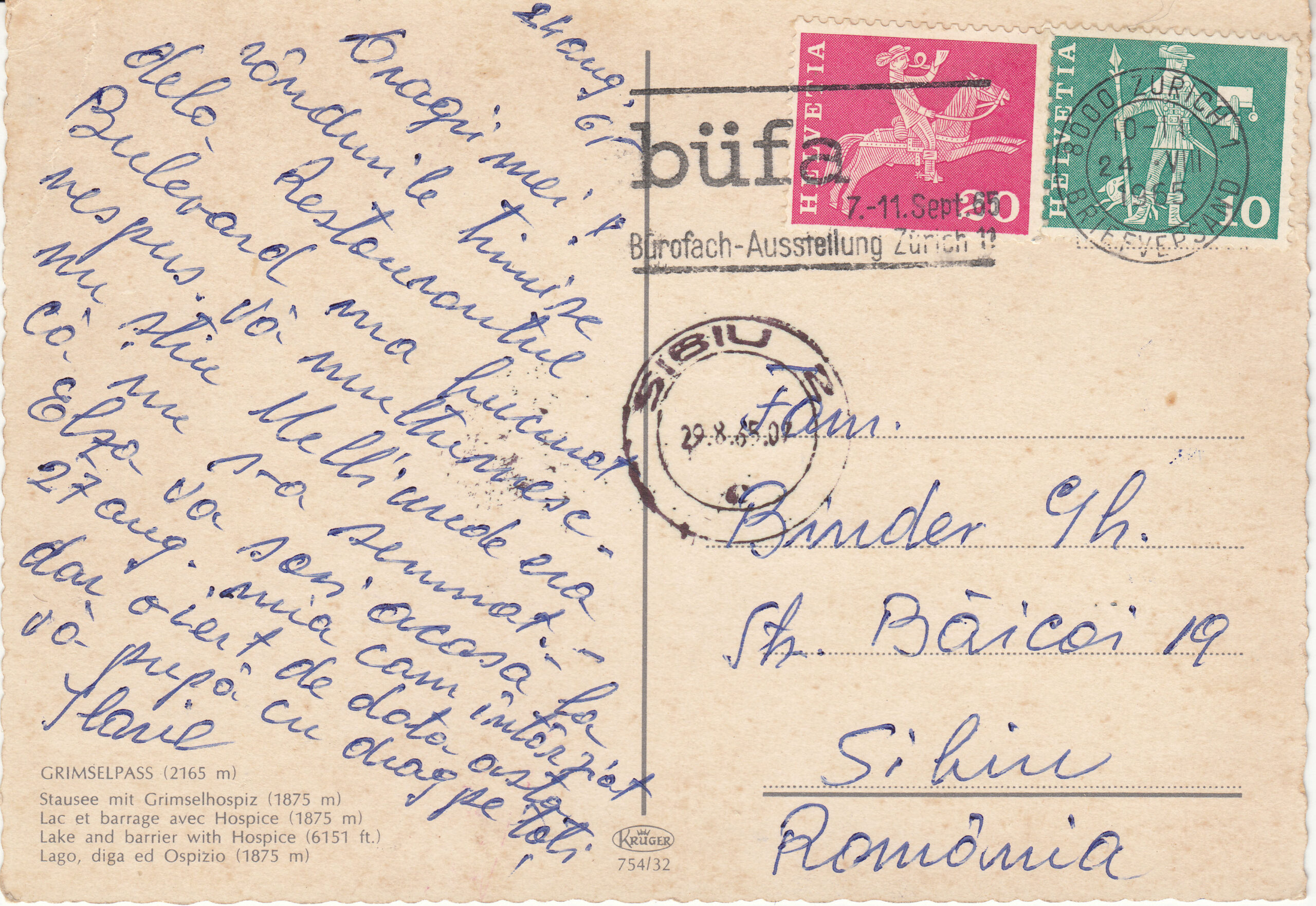 0.754- 18 Krüger Postcard Switzerland