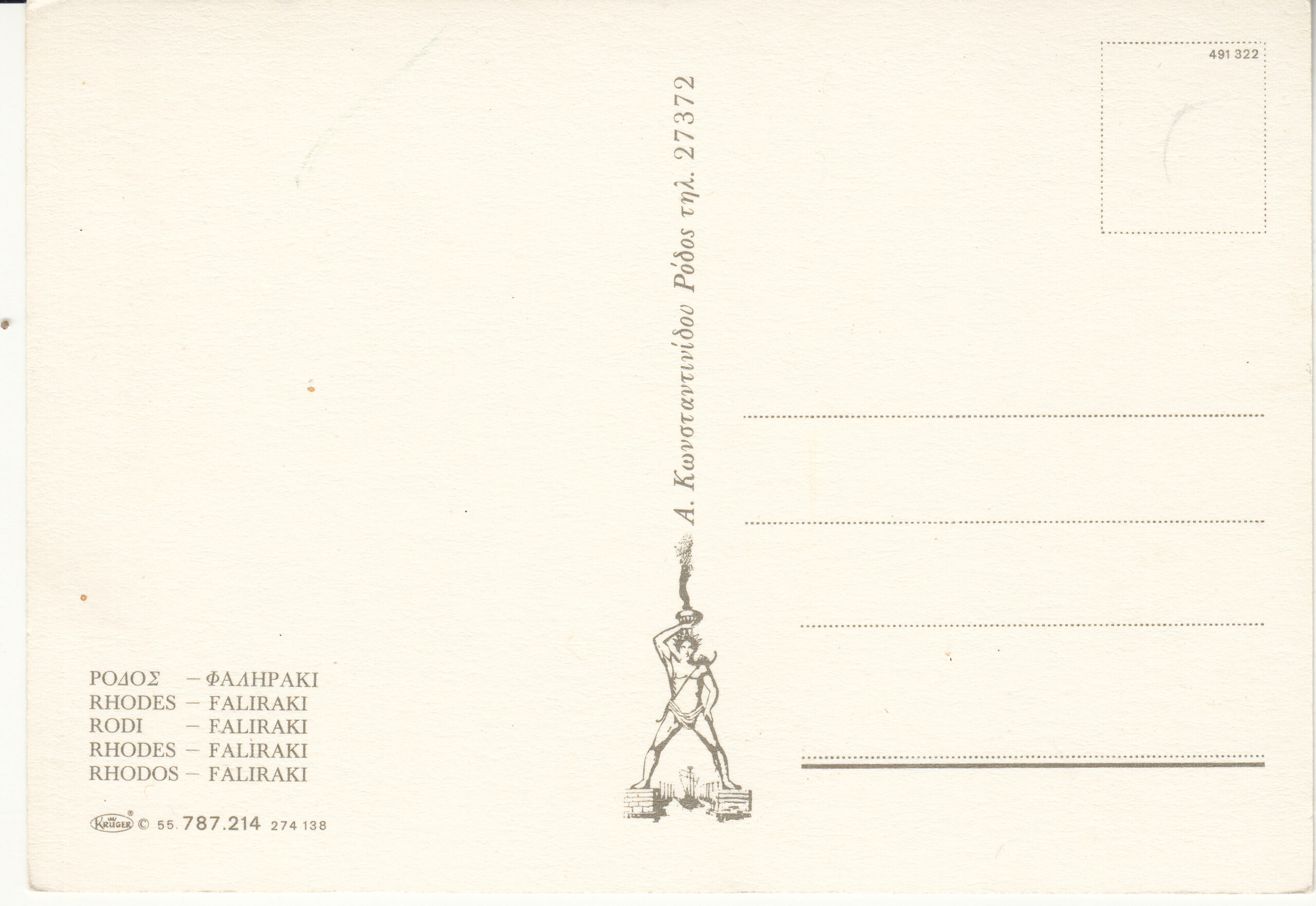 0.787-214.55 Krüger Postcard Greece Rhodes