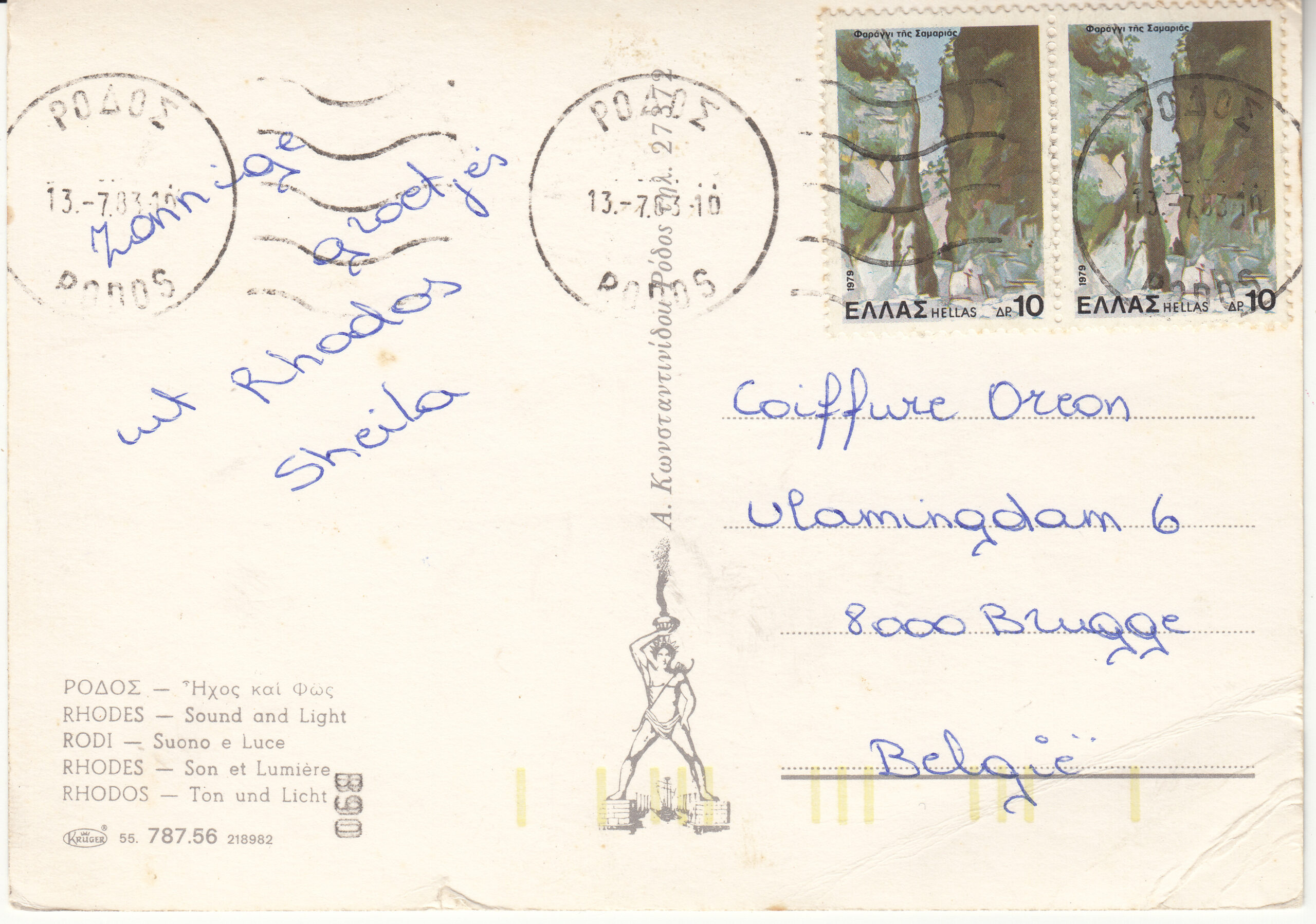 0.787- 56.55 Krüger Postcard Greece Rhodes