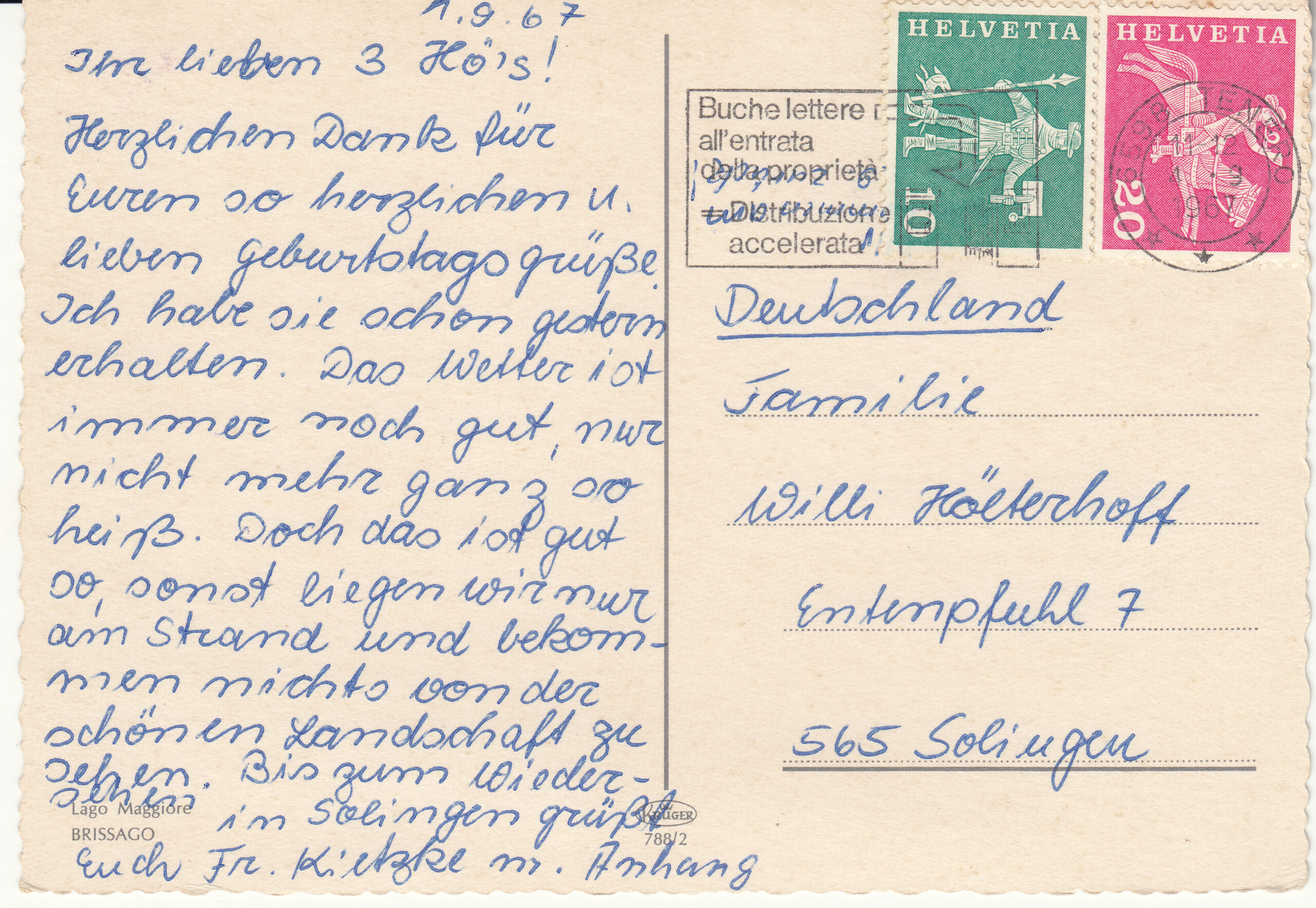 0.788- 2 Krüger Postcard Switzerland Lago Maggiore- Brissago