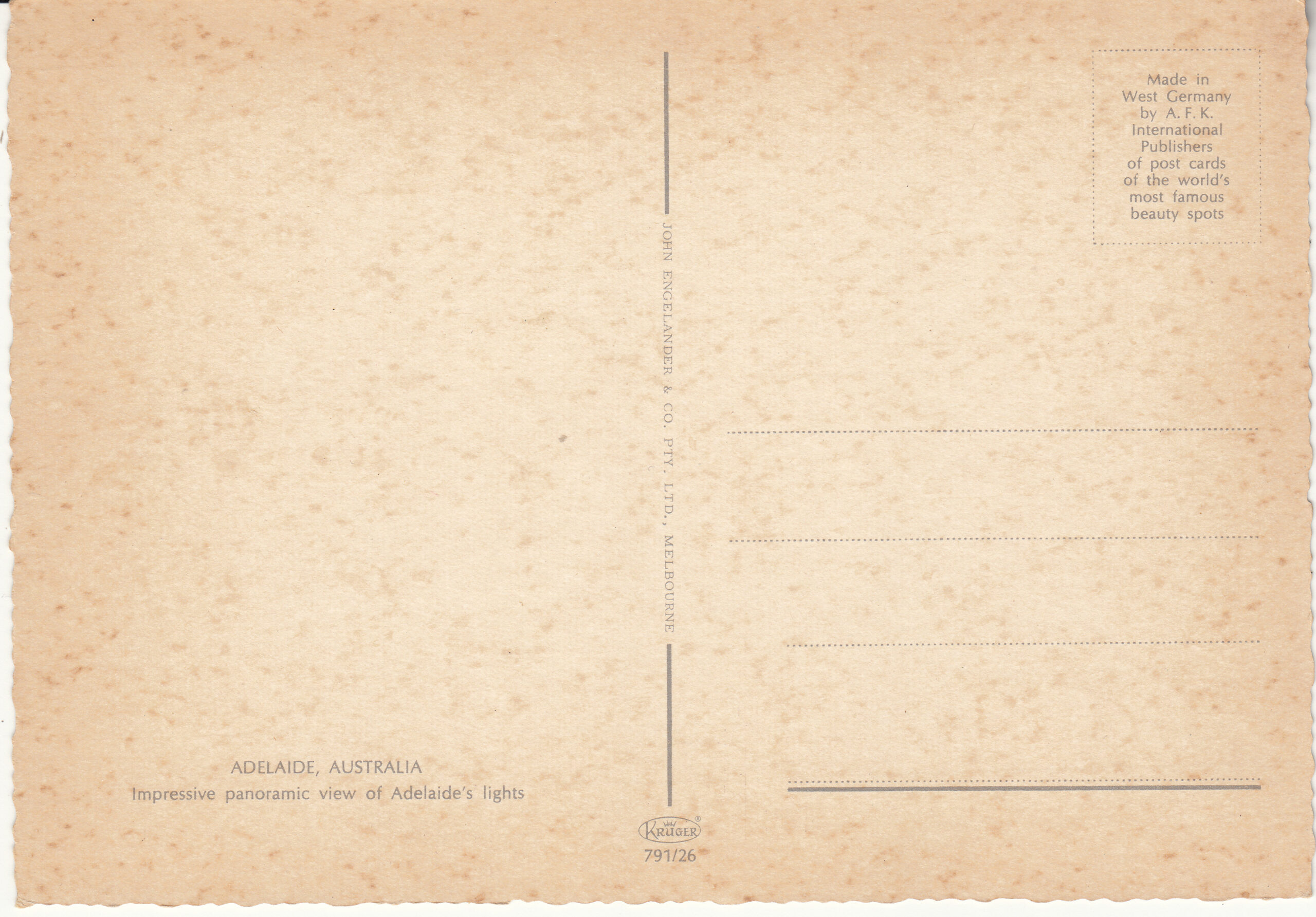 0.791- 26 Krüger Postcard Australia Adelaide