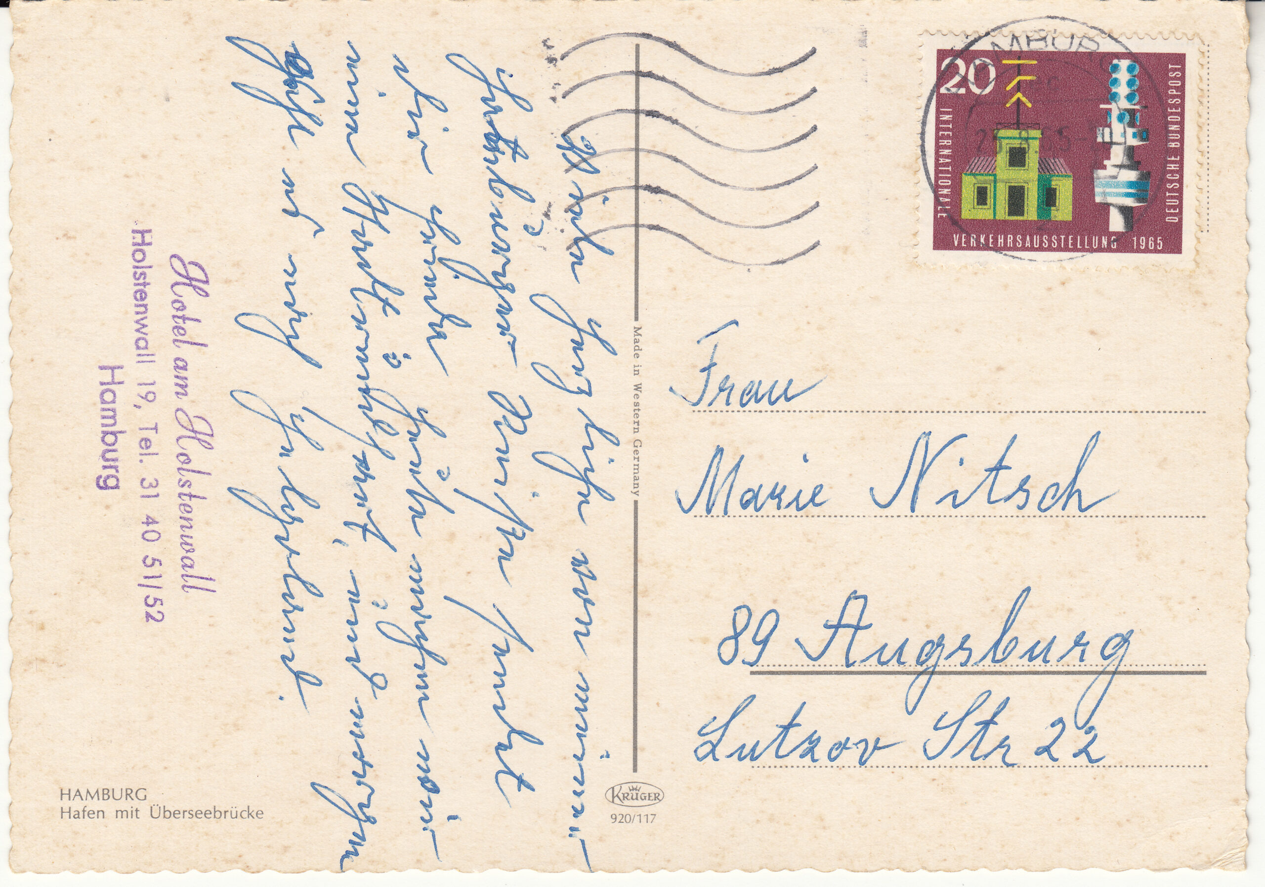 0.920-117 Krüger Postcard Germany Hamburg
