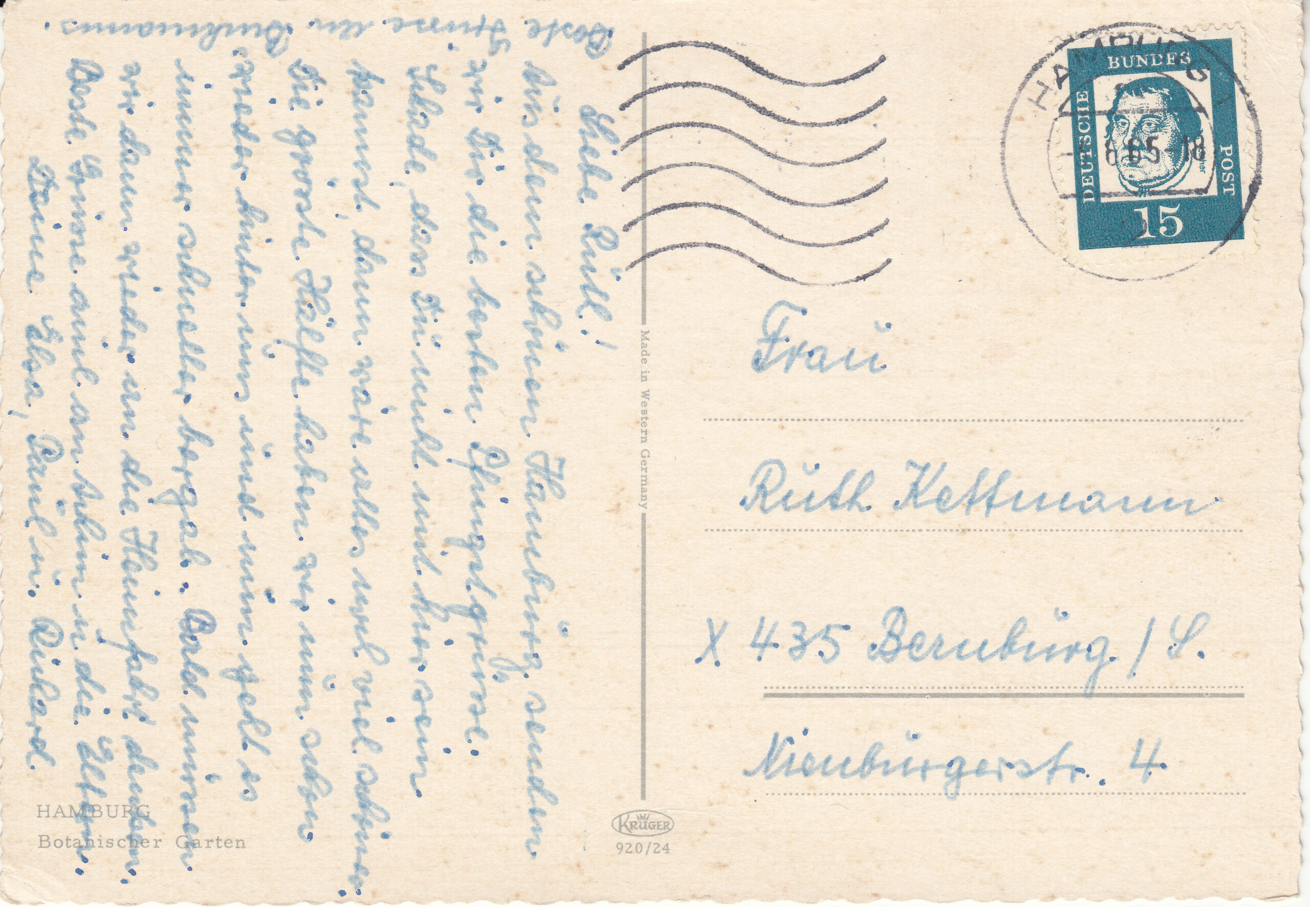 0.920- 24 Krüger Postcard Germany Hamburg