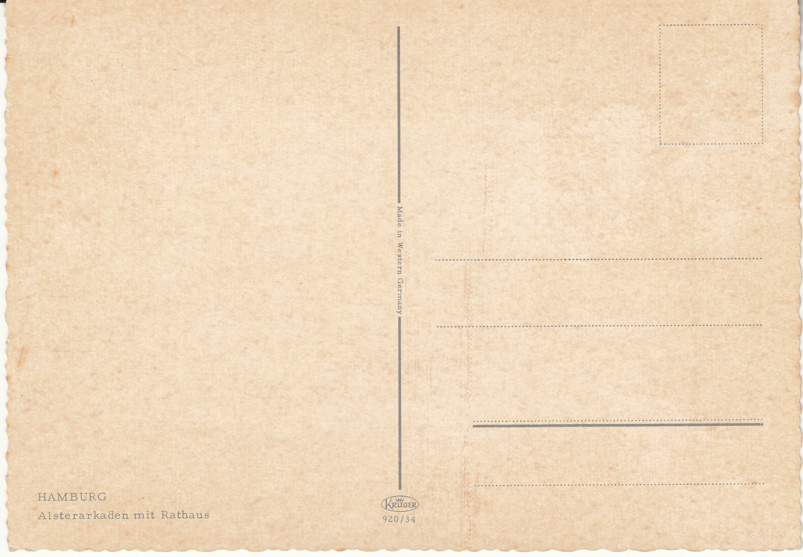 0.920- 34 Krüger Postcard Germany Hamburg
