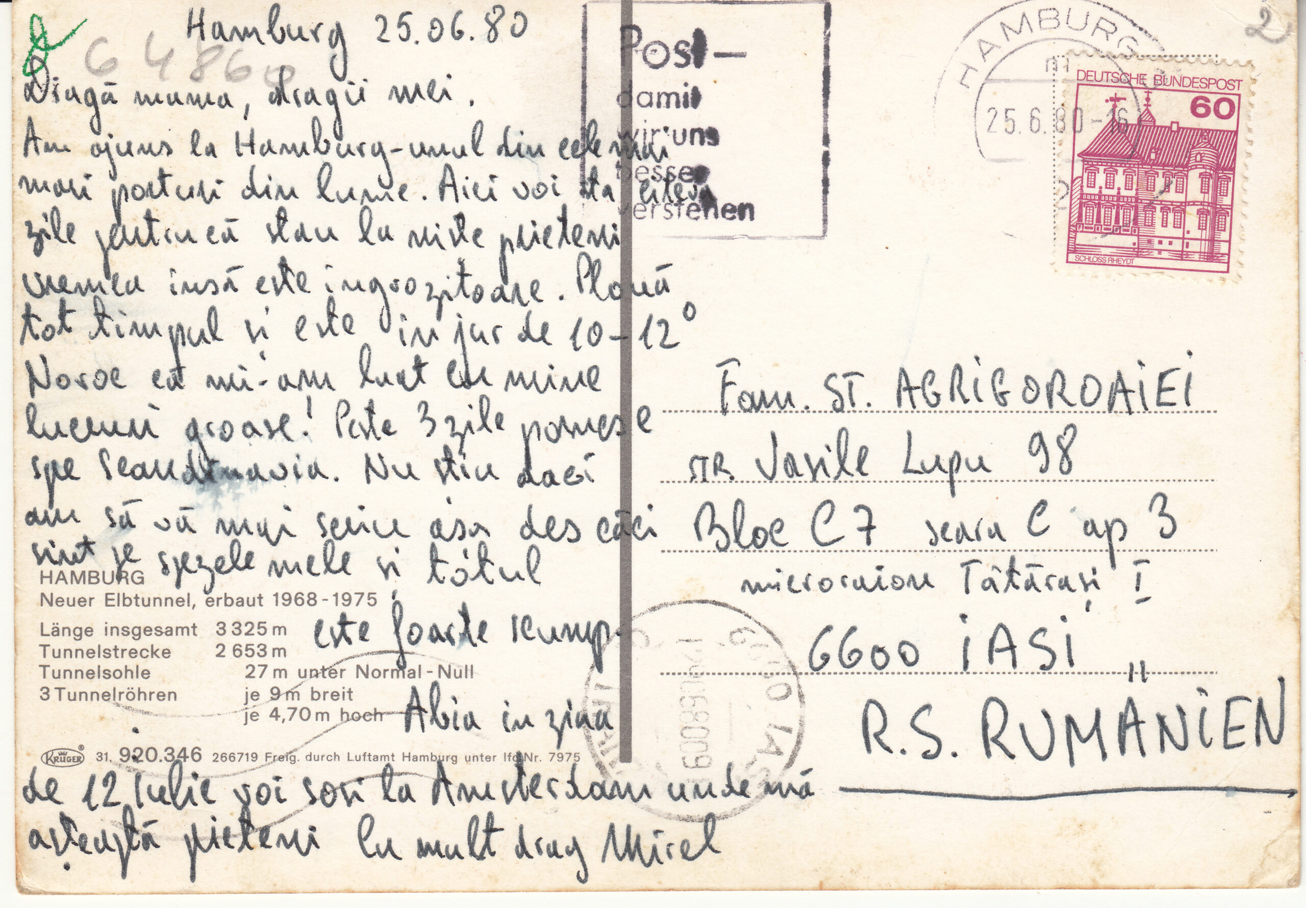 HAMBURG, Neuer Elbtunnel, erbaut 1968-1975, Länge insgesamt 3325 m, Tunnelstrecke 2636 m, Tunnelsohle 27 m unter Normal-Null, 3 Tunnelröhren je 9 m breit je 4,70 m hoch
