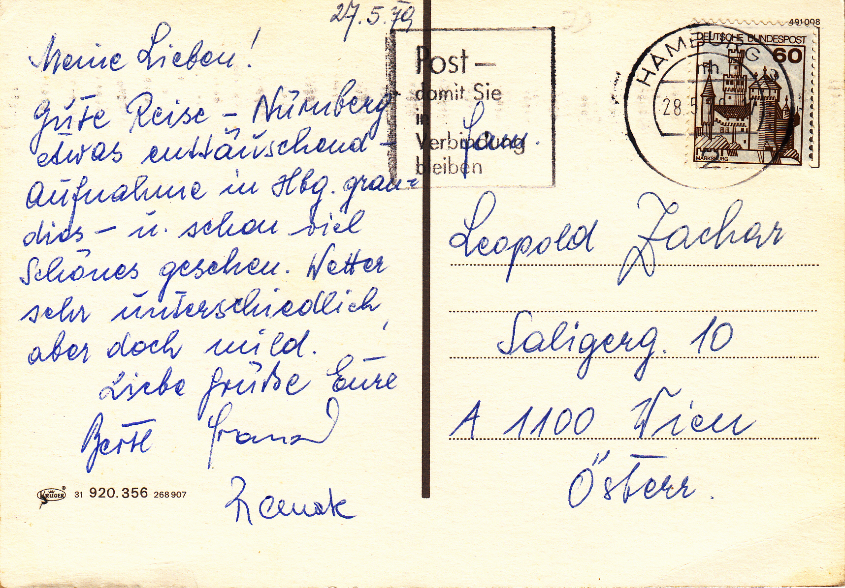 0.920-356.31 Krüger Postcard Germania Hamburg