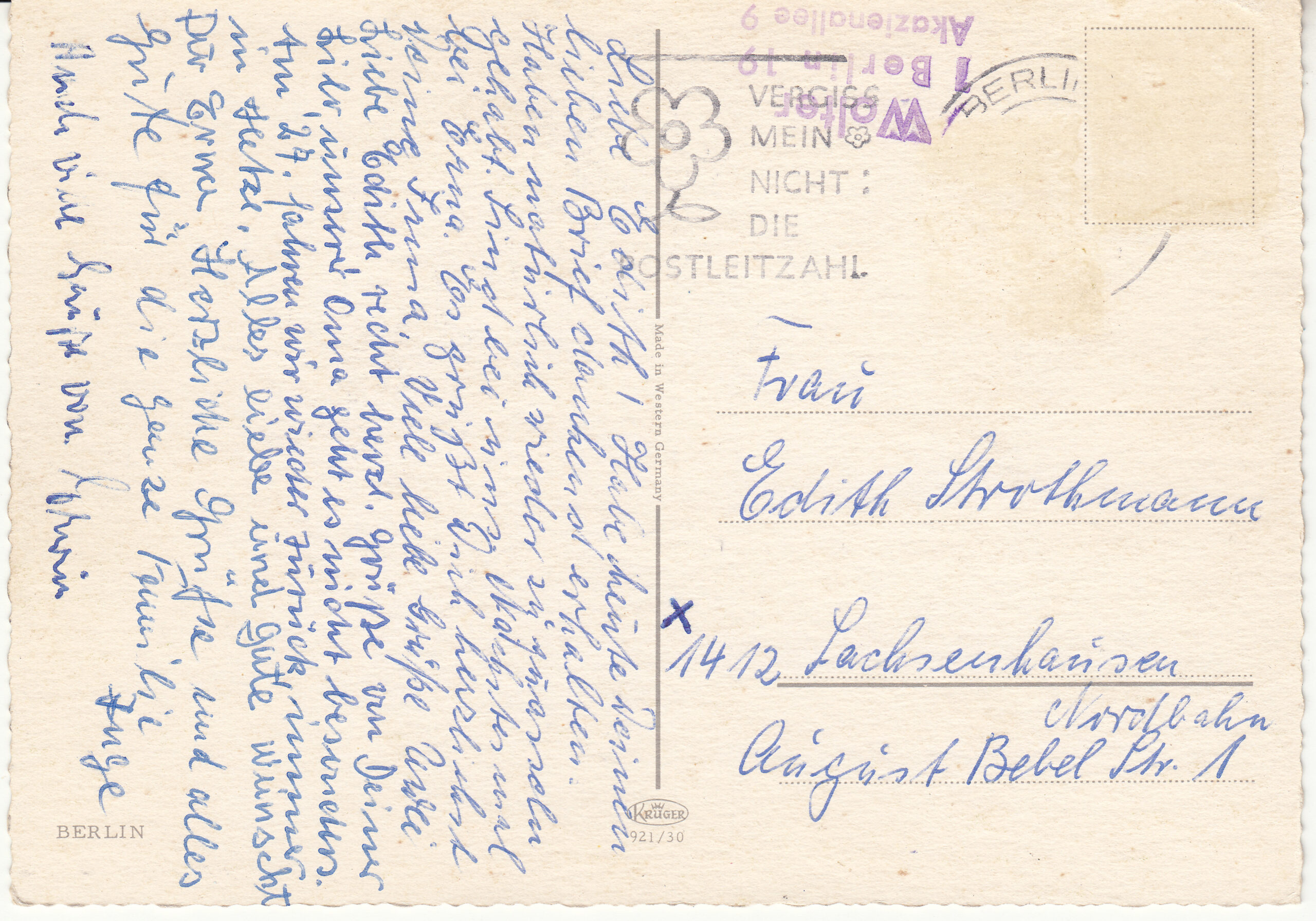 0.921- 30 Kruger Postcard Germany Berlin