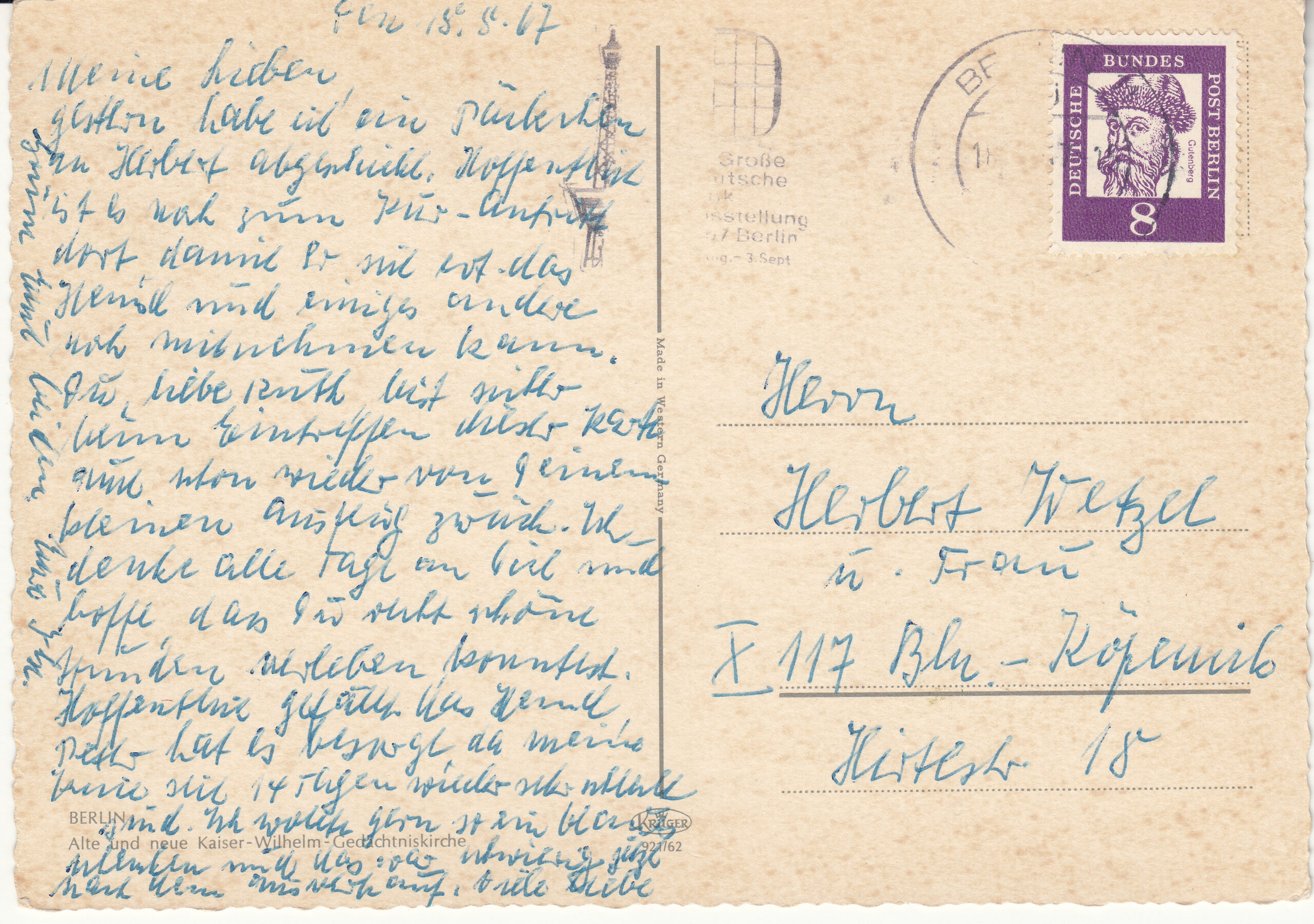 0.921- 62 Kruger Postcard Germany Berlin