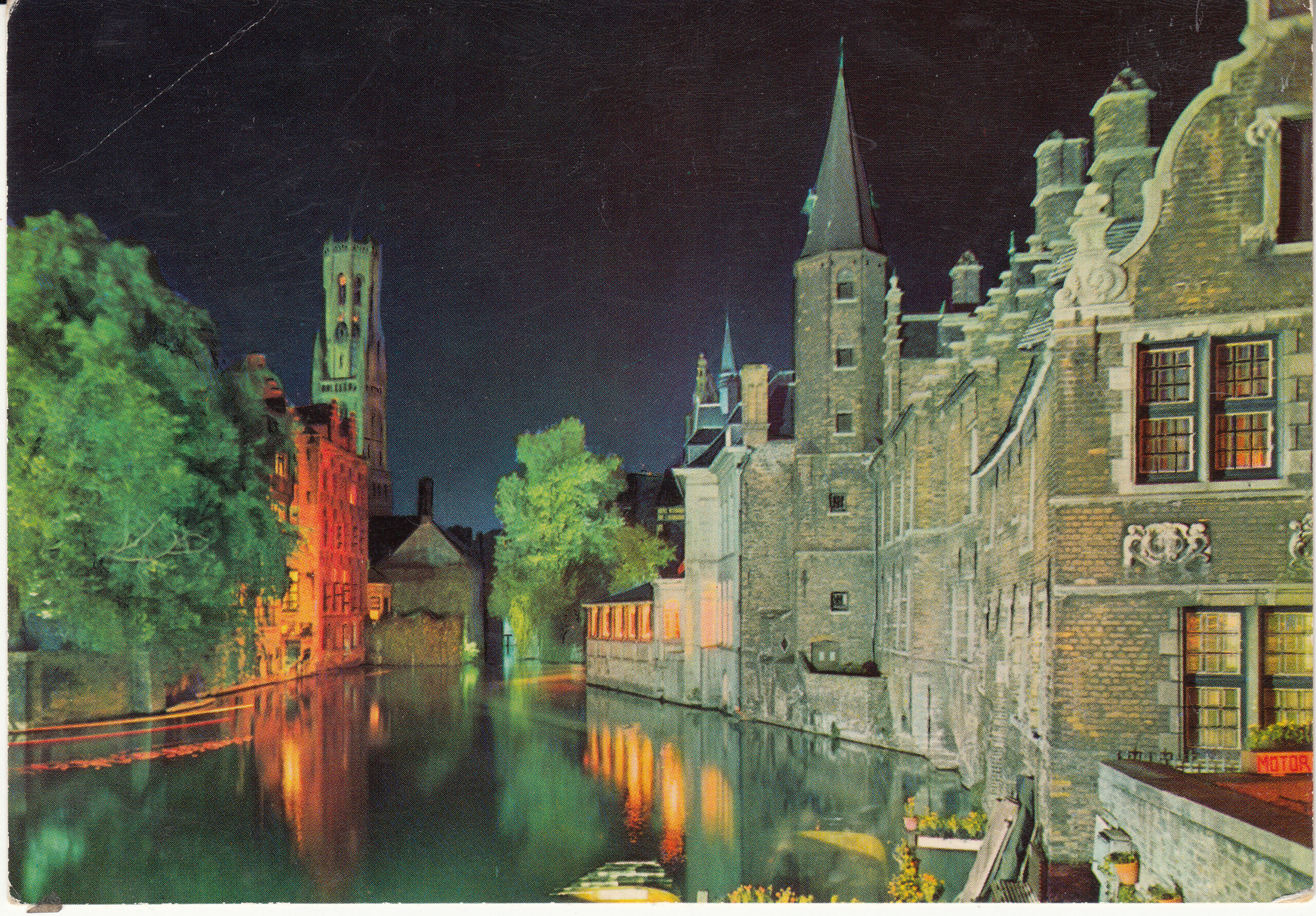 BRUGGE, The belfry by night, seen from Dijver