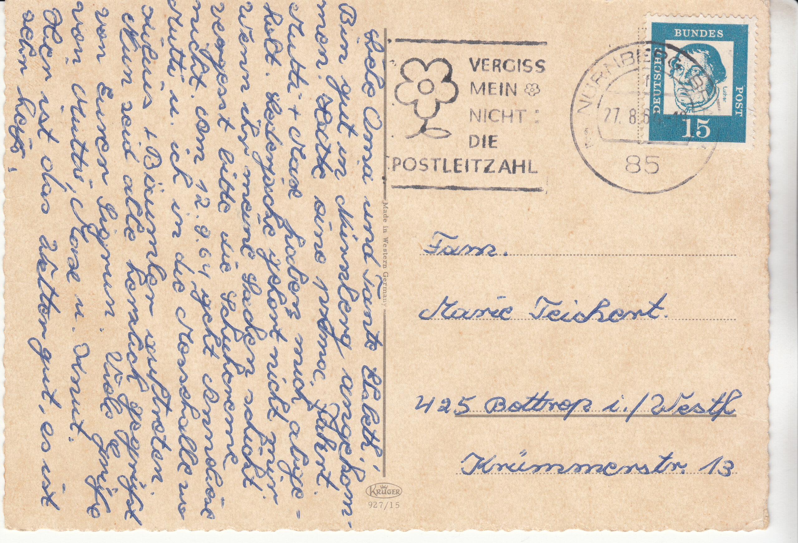 0.927- 15 Krüger Postcard Germany Nurnberg
