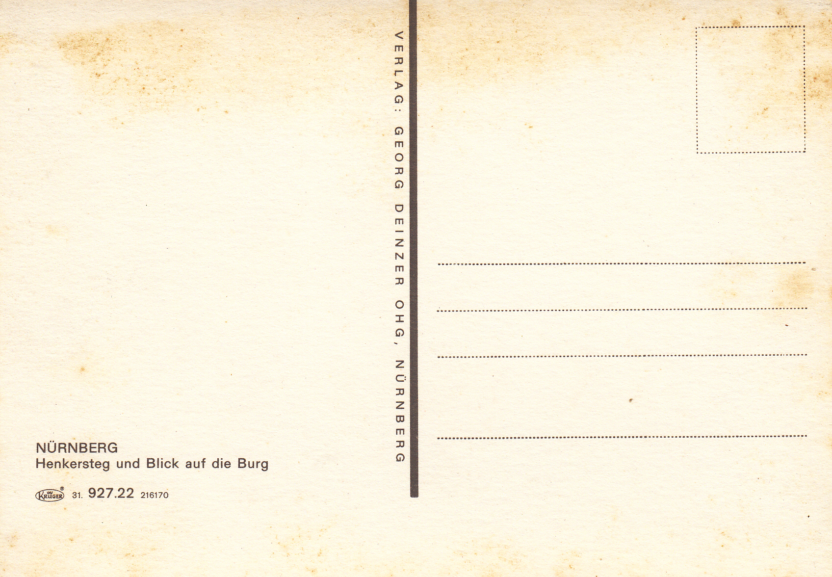 0.927- 22.31 Krüger Postcard Germany Nürnberg
