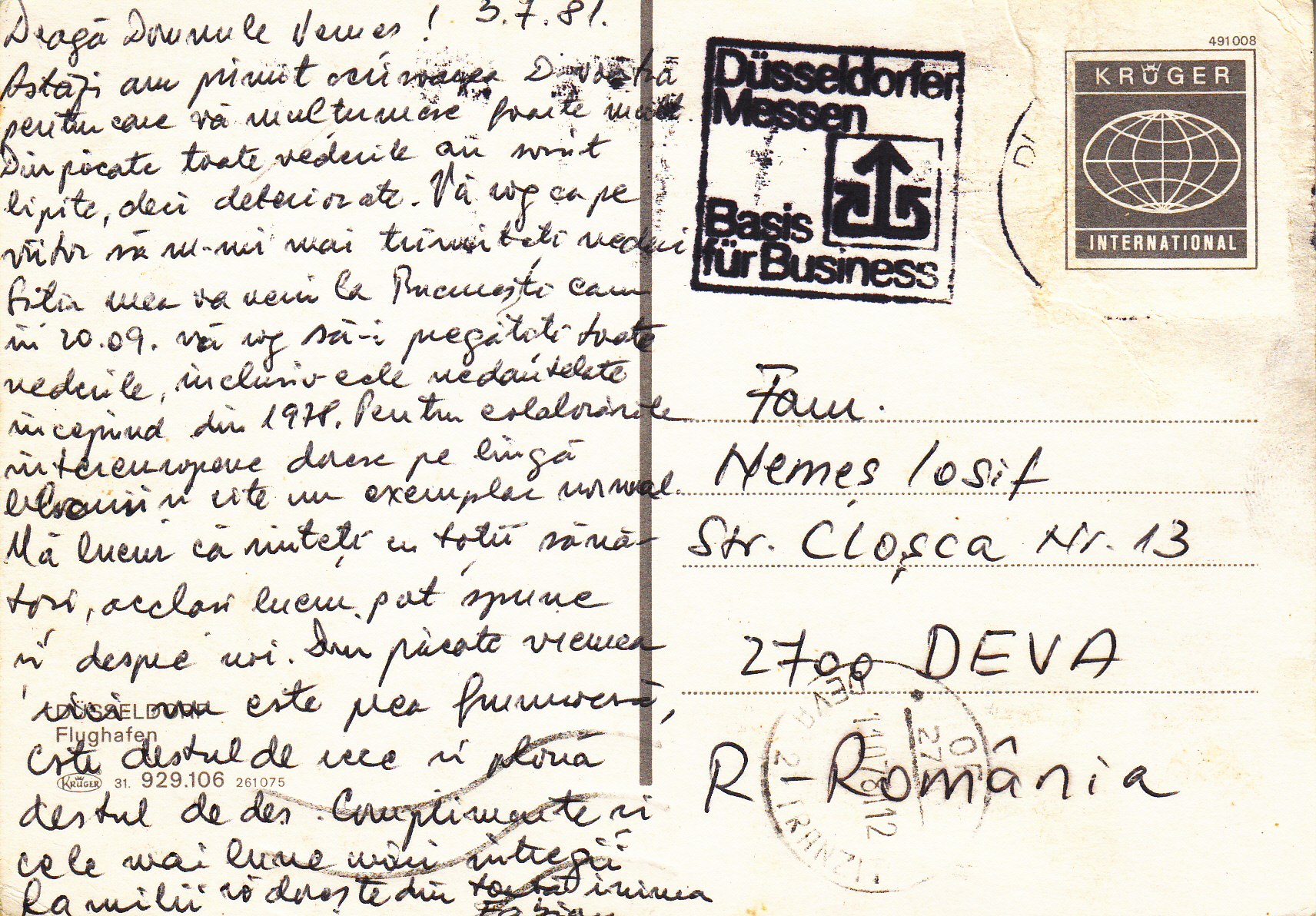 0.929- 17 Krüger Postcard Germany Dusseldorf