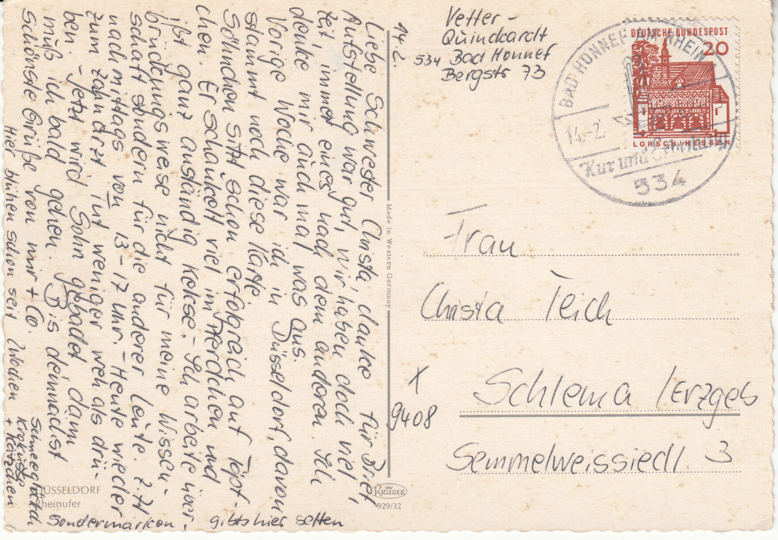 0.929- 17 Krüger Postcard Germany Dusseldorf