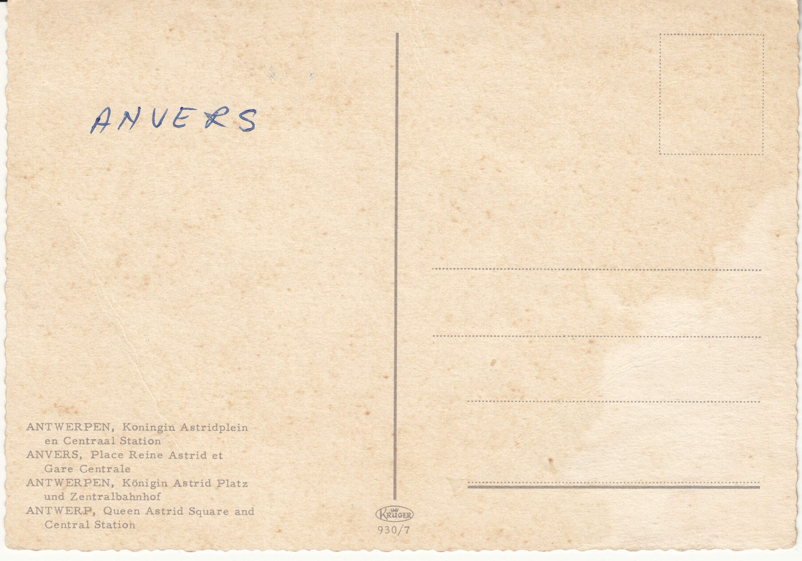 0.930B- 7 Krüger Postcard Belgium Antwerpen