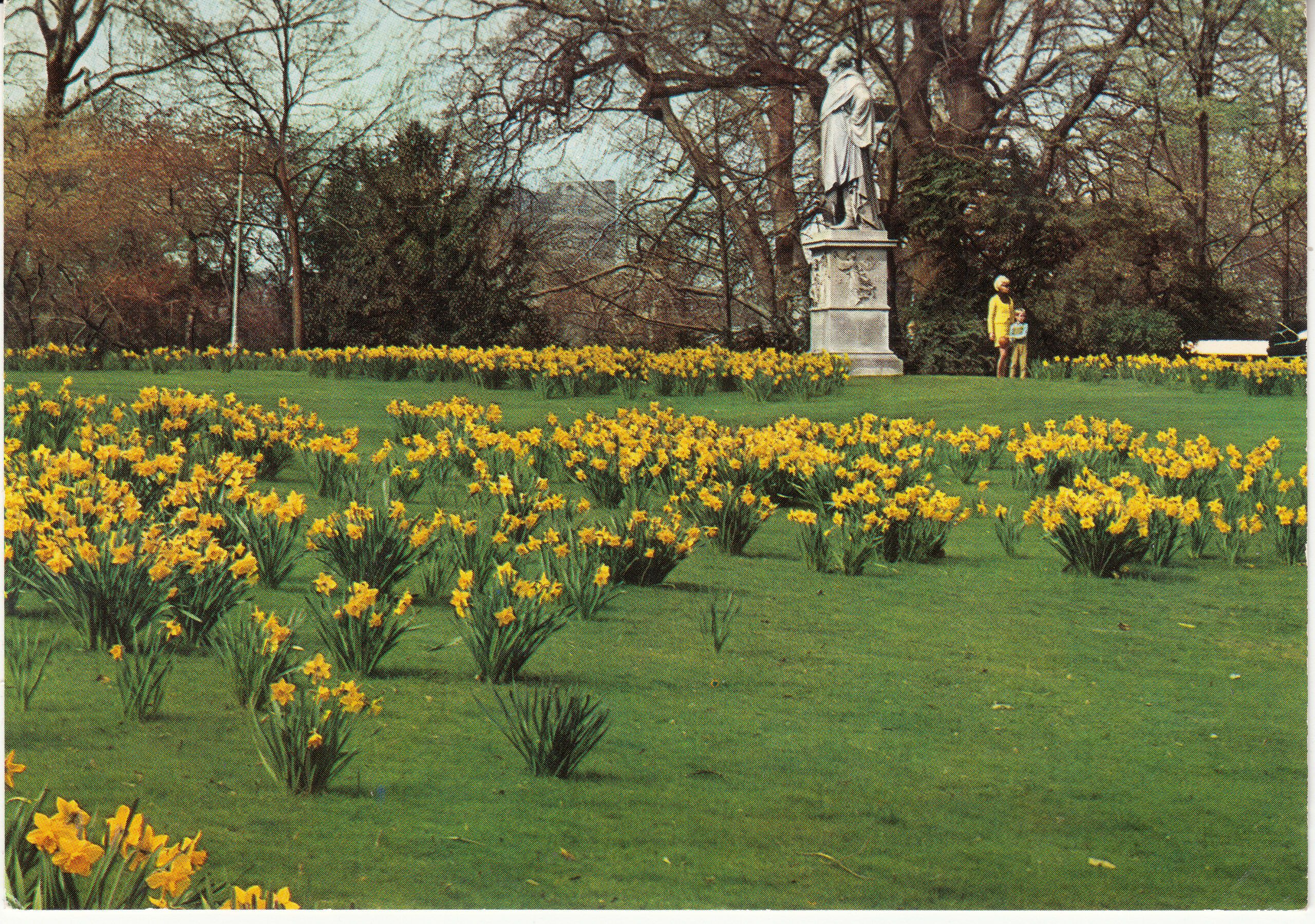 BREMEN, Frühling in den Wallanlangen am Denkmal des Bremer Arztes und Astronomen H.W.M. Olbers, ged. 11.10.1758, gest. 2.3.1840