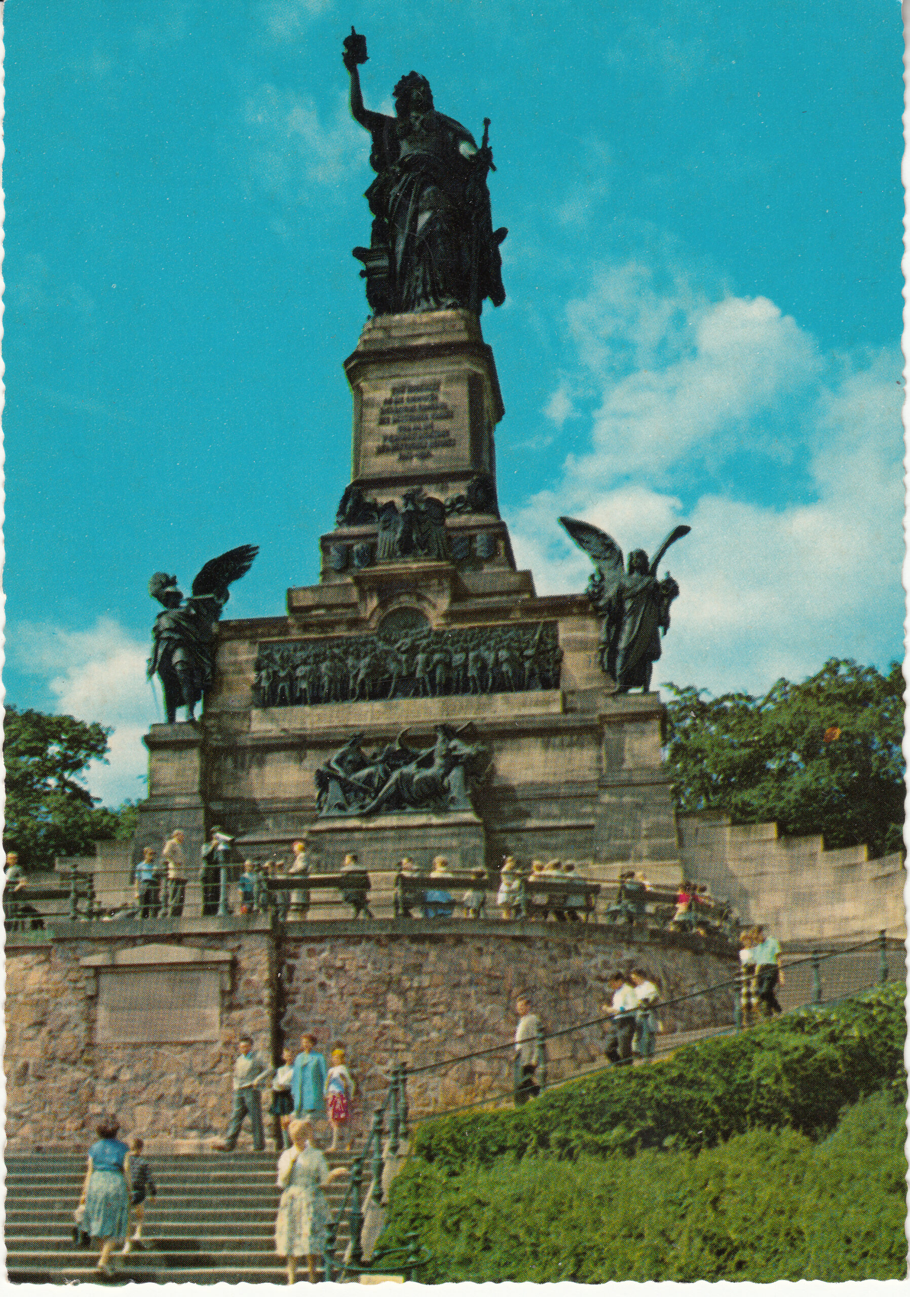 RHEIN, Niederwalddenkmal, Enthüllung: 28.9.1883, Gesamthöhe: 37,60 m, Germaniafigur: 10,50 m, Reichsadler: 2,30 m, Krone: 1,00 m, Schwert: 7,05 m, Gewicht der Germania: 32 t