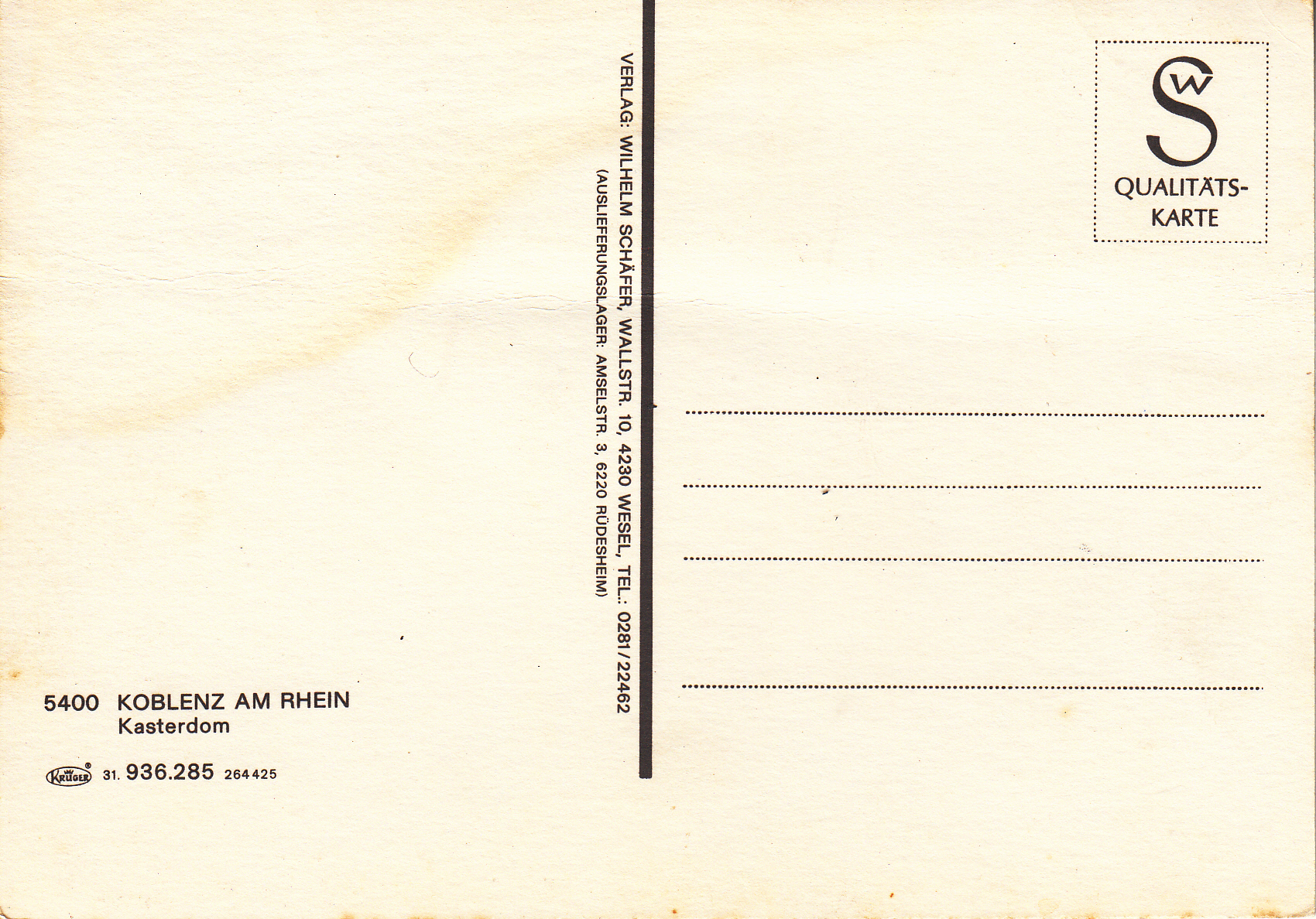 Be the first to review “0.936-285.31 Krüger Postcard Germany Koblenz am Rhein”