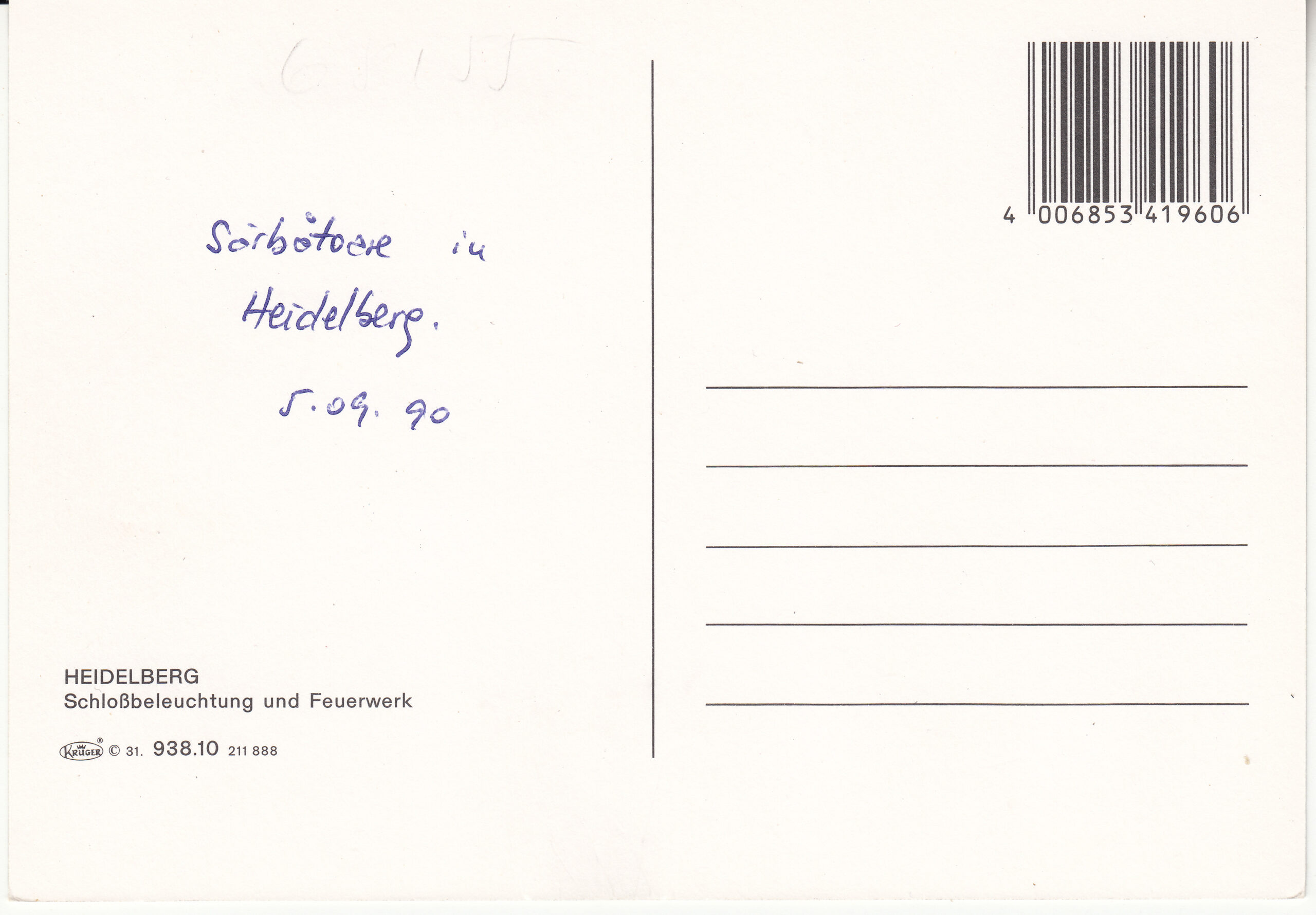 0.938- 10.31 Krüger Postcard Germany Heidelberg