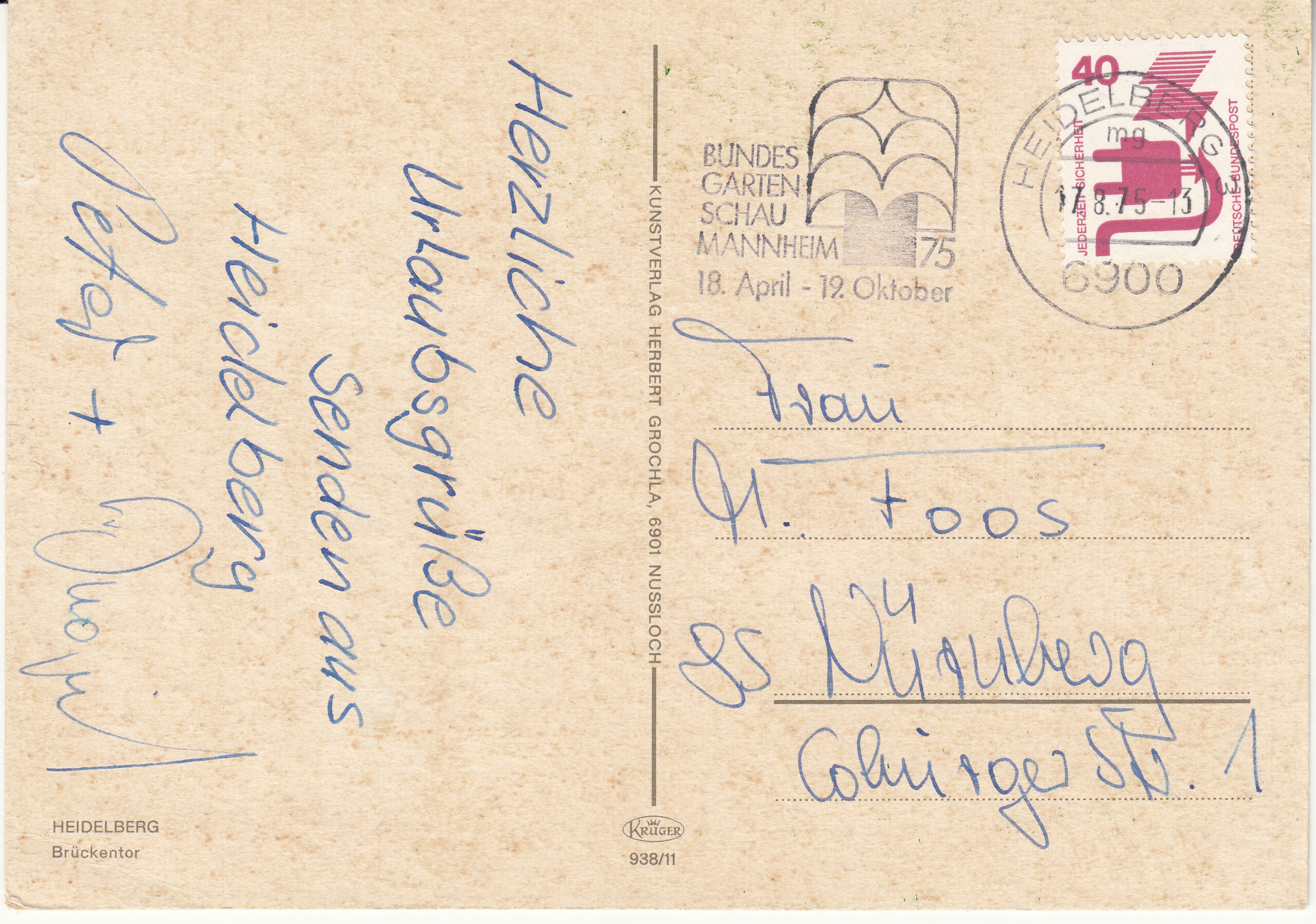 0.938- 11 Krüger Postcard Germany Heidelberg