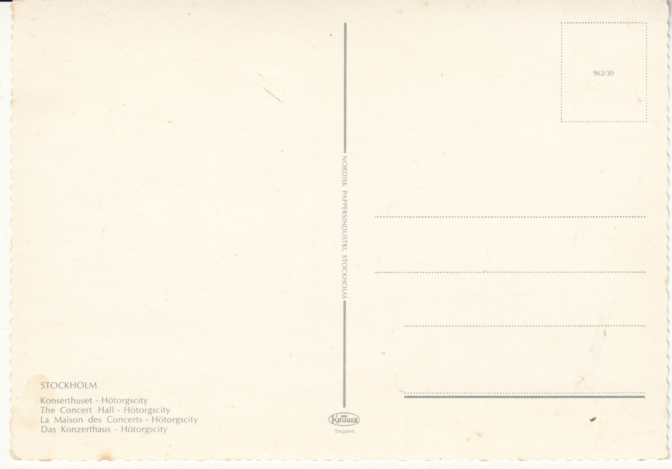0.962- 30 Krüger Postcard Sweden Stockholm