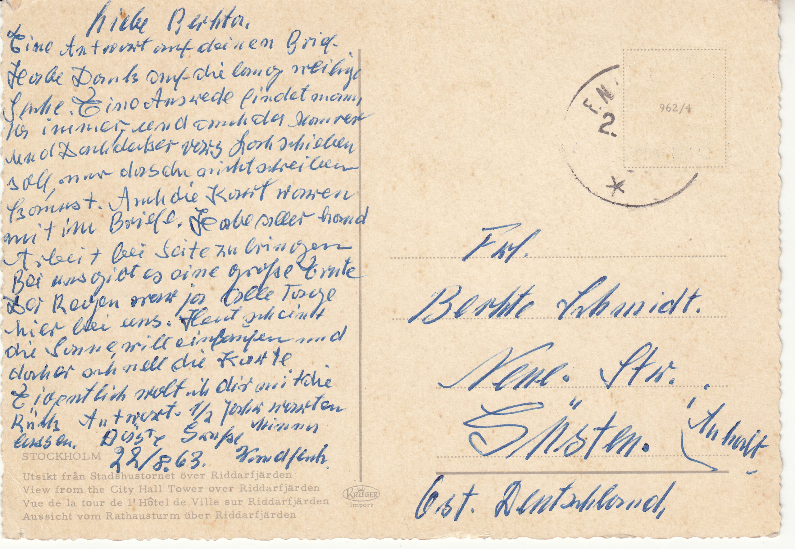 0.962- 4 Krüger Postcard Sweden Stockholm