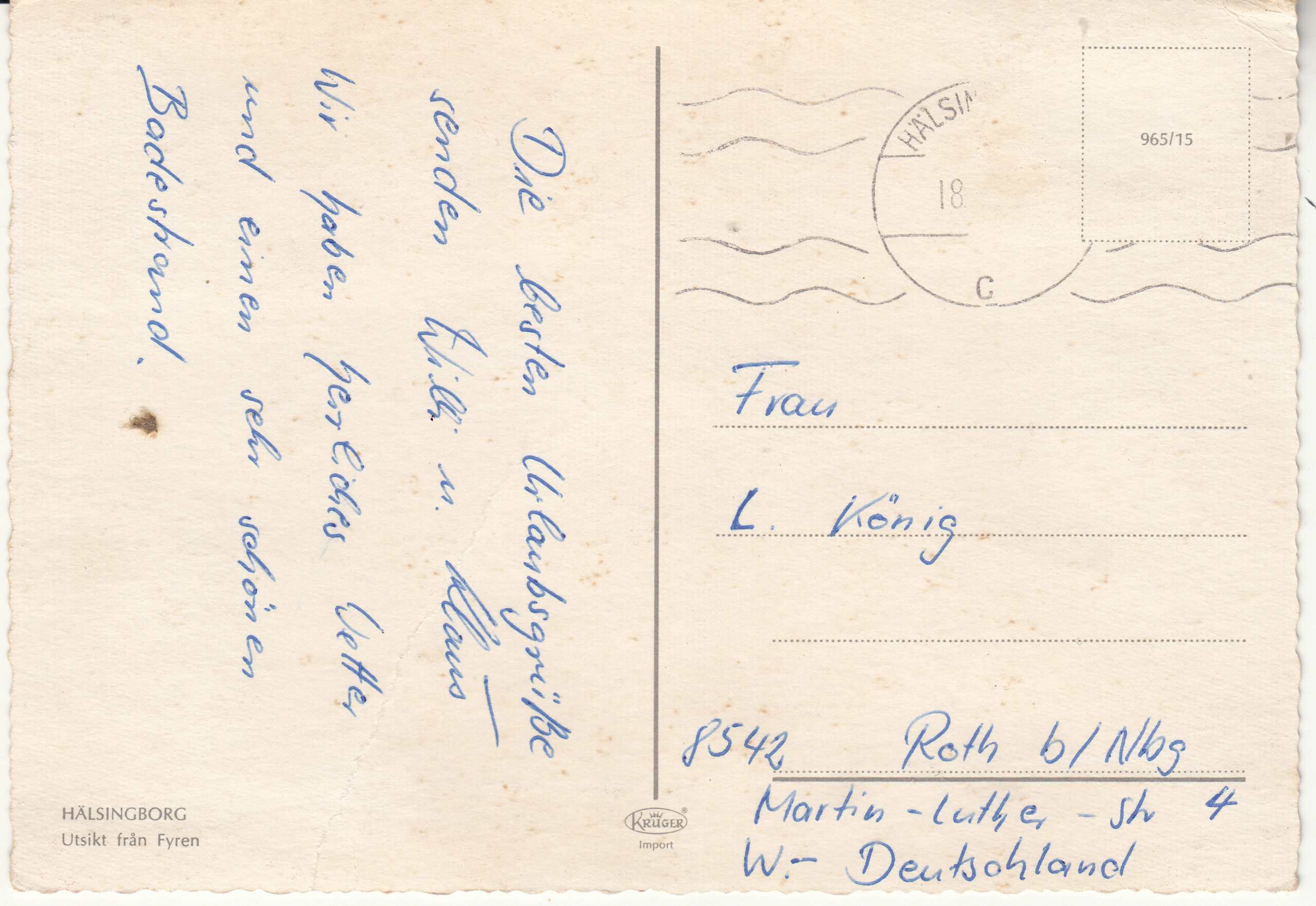 0.965-XX1 Krüger Postcard Sweden Helsingborg