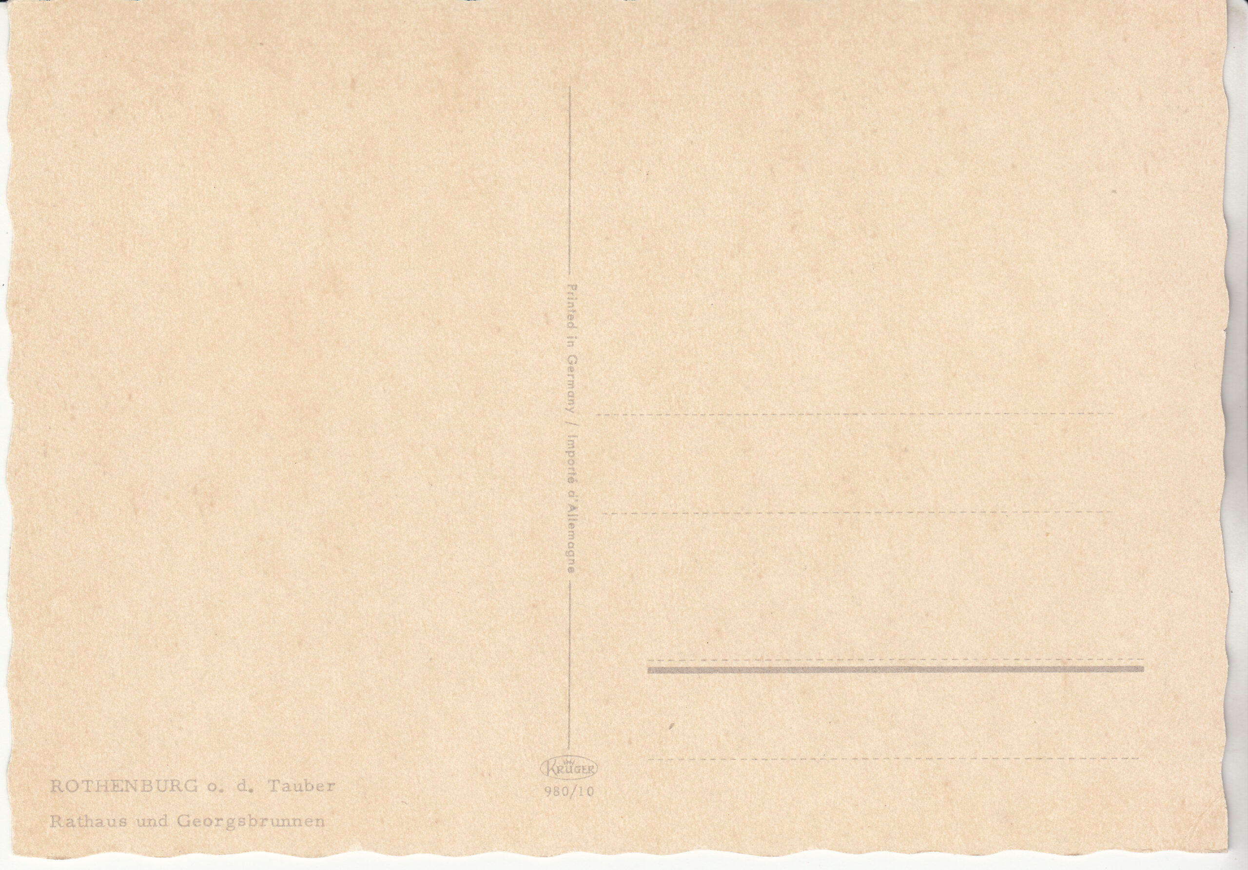 0.980- 10 Krüger Postcard Germany Rothenburg