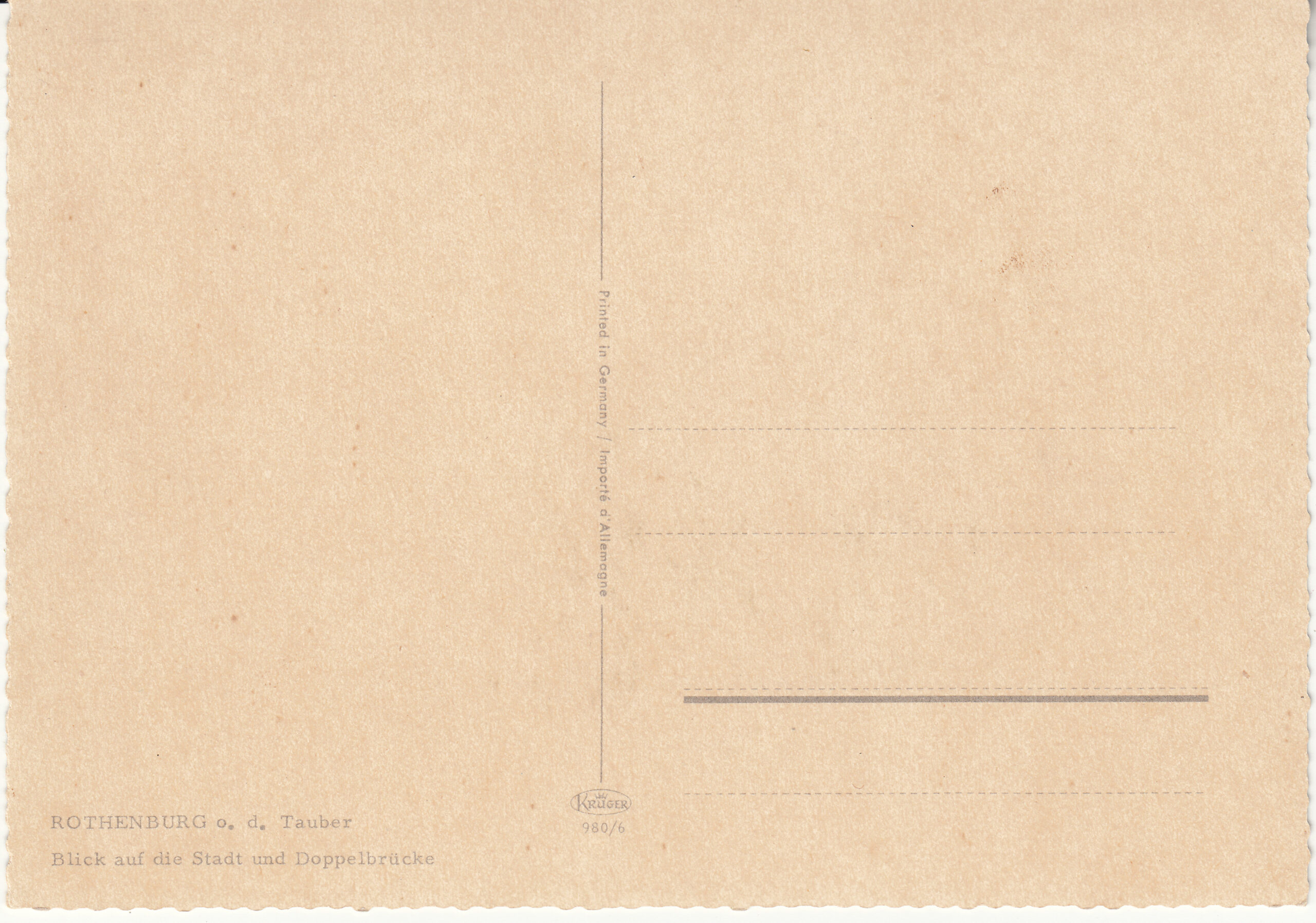 0.980- 6 Krüger Postcard Germany Rothenburg