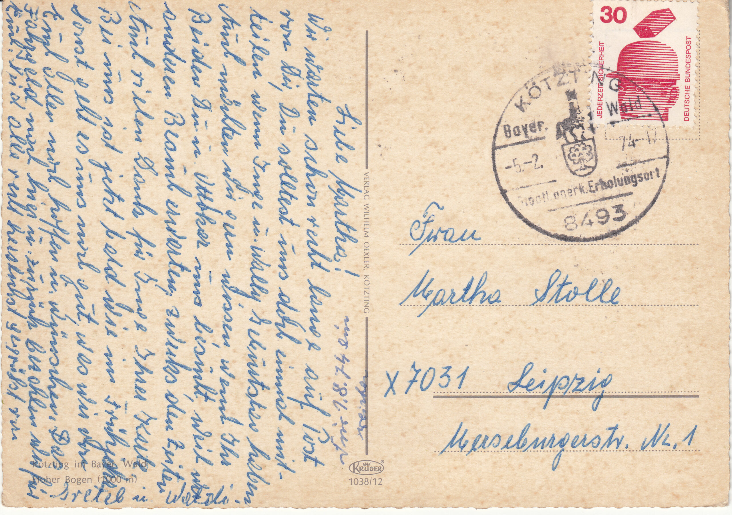 1.038- 5 Krüger Postcard Germany Bayer. Wald
