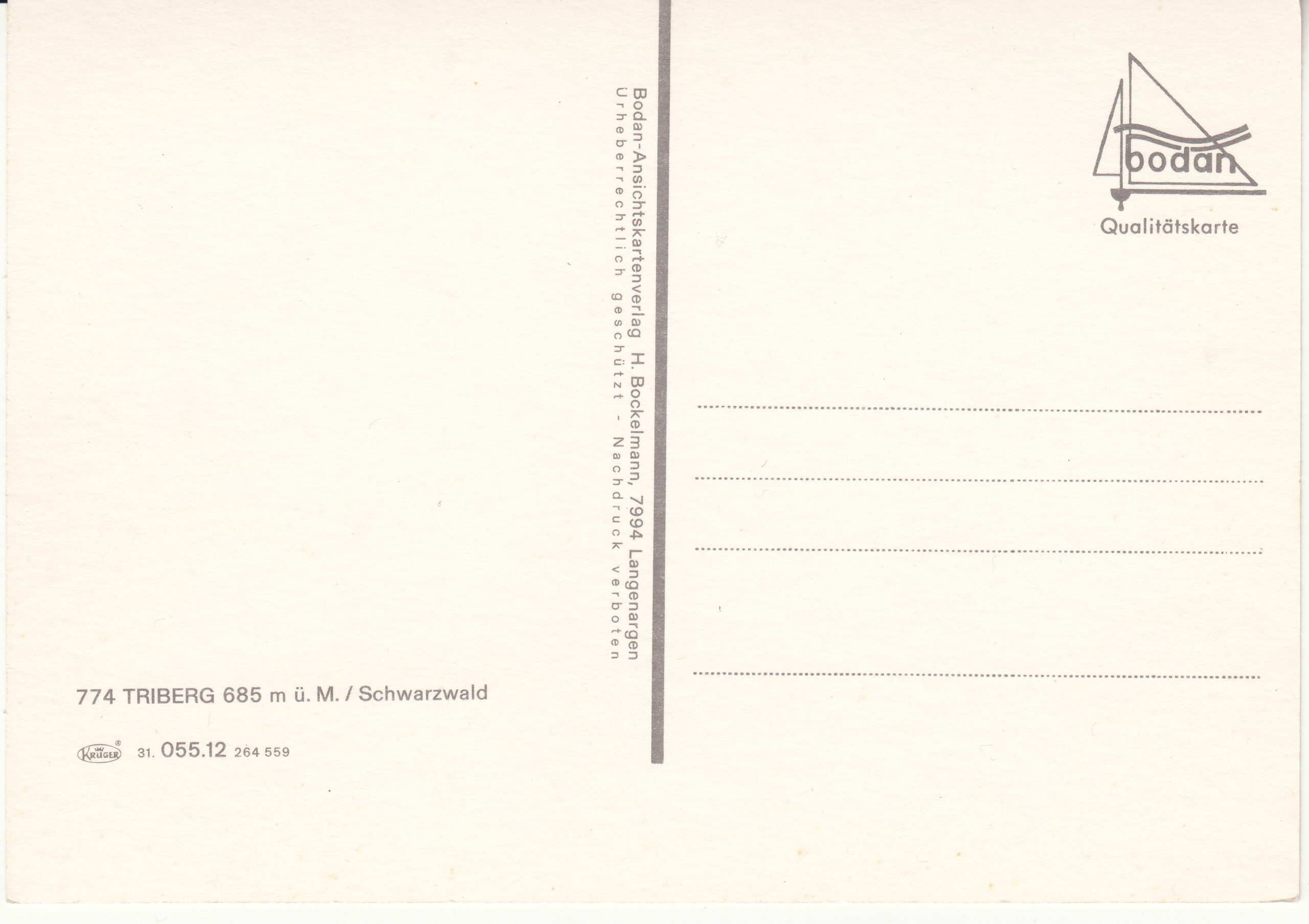 1.055- 12.31 Krüger Postcard Germany Triberg im Schwarzwald