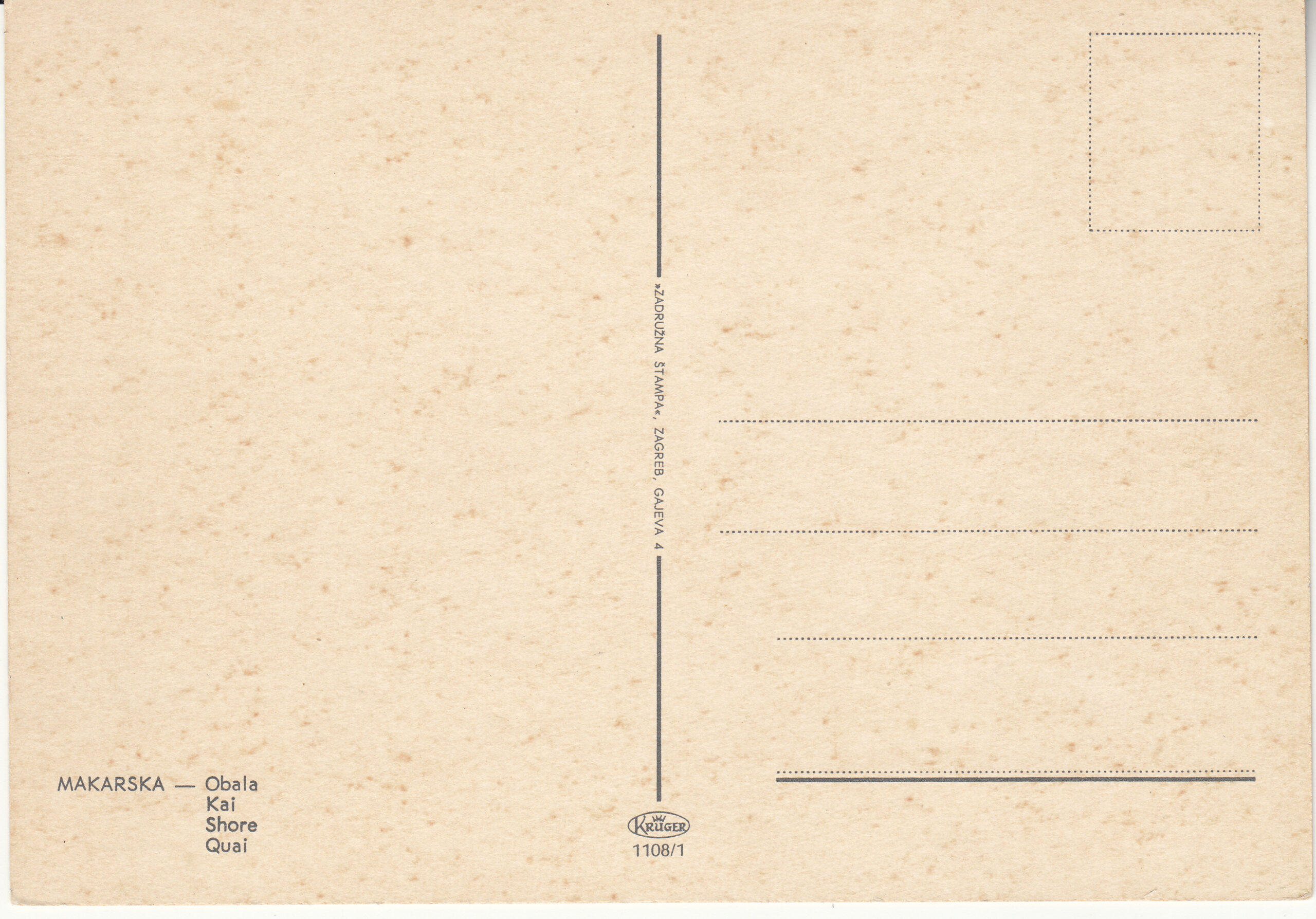 1.108- 1 Krüger Postcard Croatia Makarska
