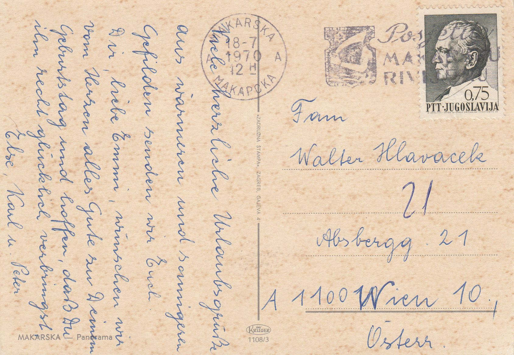 1.108- 3 Krüger Postcard Croatia Makarska