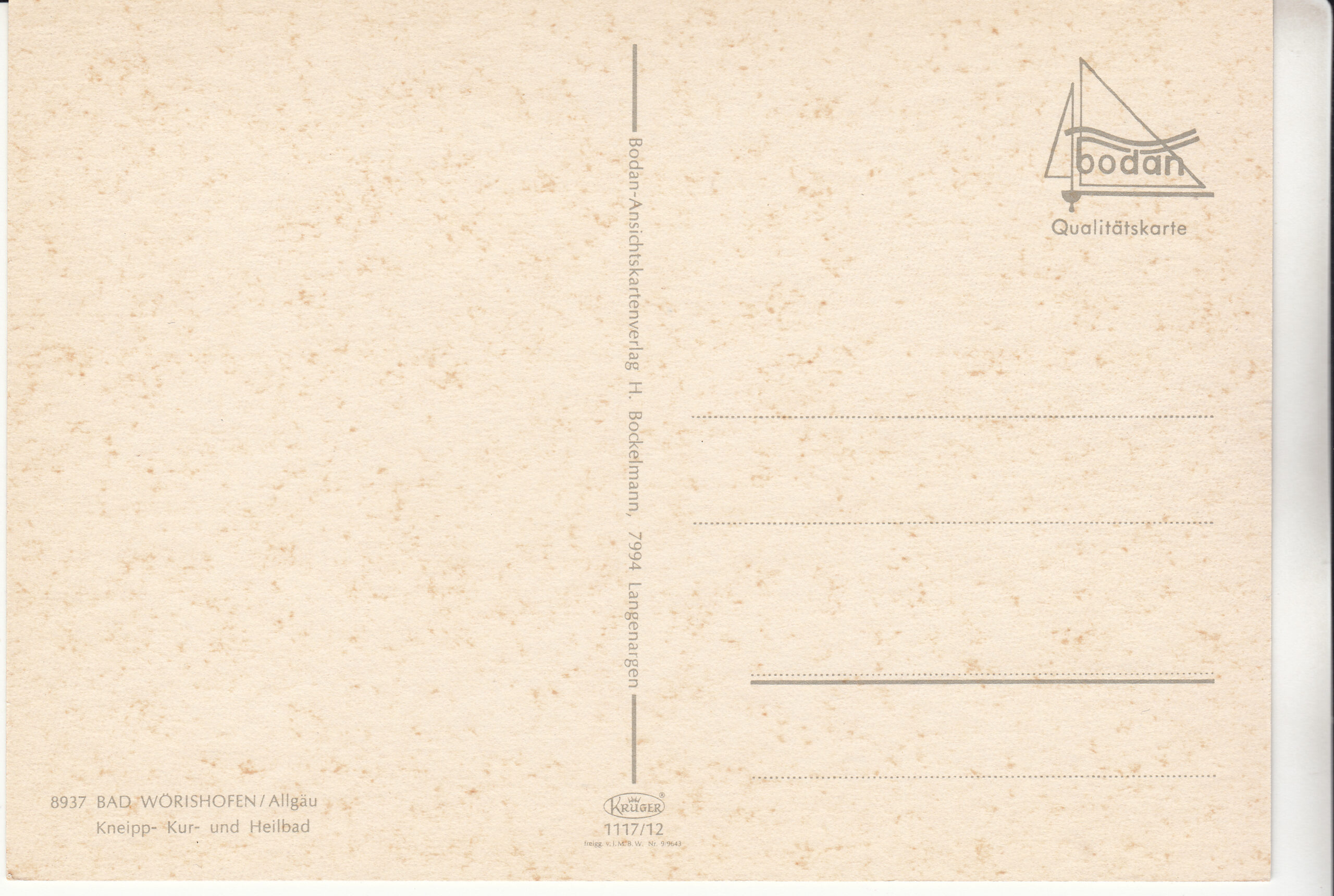 1.117- 15 Krüger Postcard Germany Bad Wörishofen