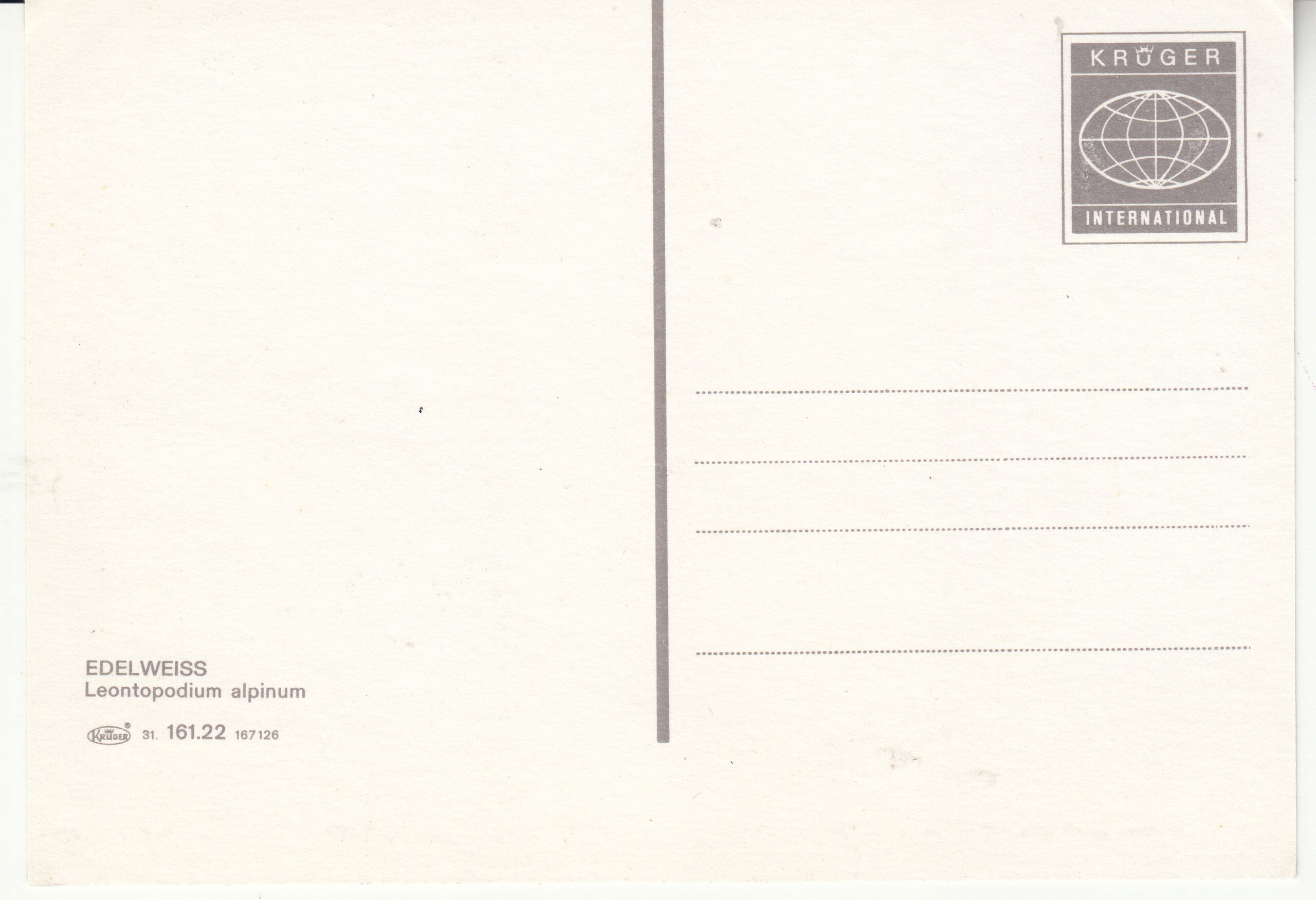 1.161- 10.31 Krüger Postcard Germany Edelweiss